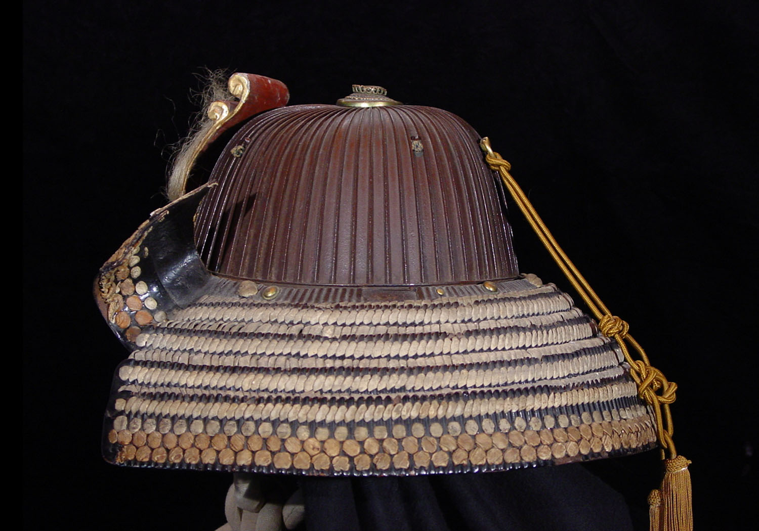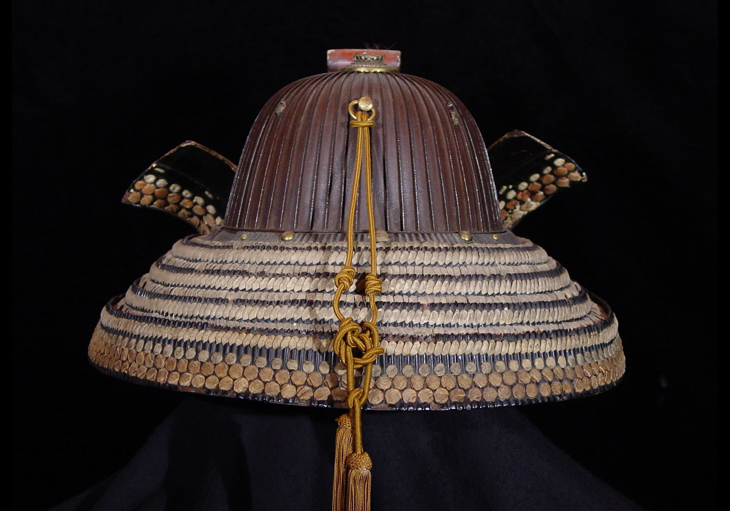 This is a very well made suji kabuto comprised of 62 individual iron plates that have been riveted together. This helmet is an authentic Samurai helmet from the late 1500’s that was used when the country of Japan was in a state of constant civil warfare so it has definitely seen use on the battlefield.