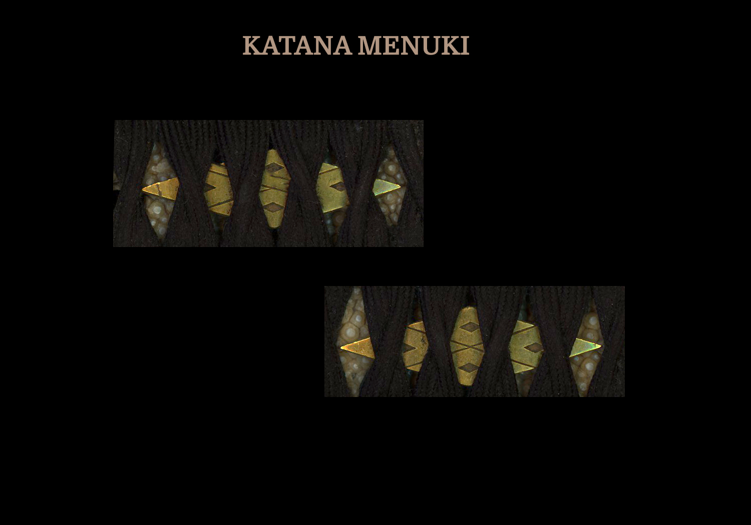 The jihada (grain of the steel) is a beautiful ko-mokume mixed with masame. There are a few areas of tobiyaki in the ji near the shinogi in the monouchi area. The hamon is a wide and shallow notare based on a hoso-suguha (wide straight temper line). There are a couple of small openings in the hamon, one about mid-way on the ura side and the other on the omote just above the habaki. Also there is a very minute chip in the bôshi which can be easily repaired. These are very minor and do not detract from the strength and beauty of this blade. There are bo-hi (grooves) on both sides ending at the habaki. The nakago appears to be slightly re-shaped and there are three mekugi-ana (holes). The blade is unsigned (mumei). The habaki is one piece and gold wash over a copper base. The blade is in very good polish. This blade comes with NBTHK Kitcho Tôken papers from 1980.