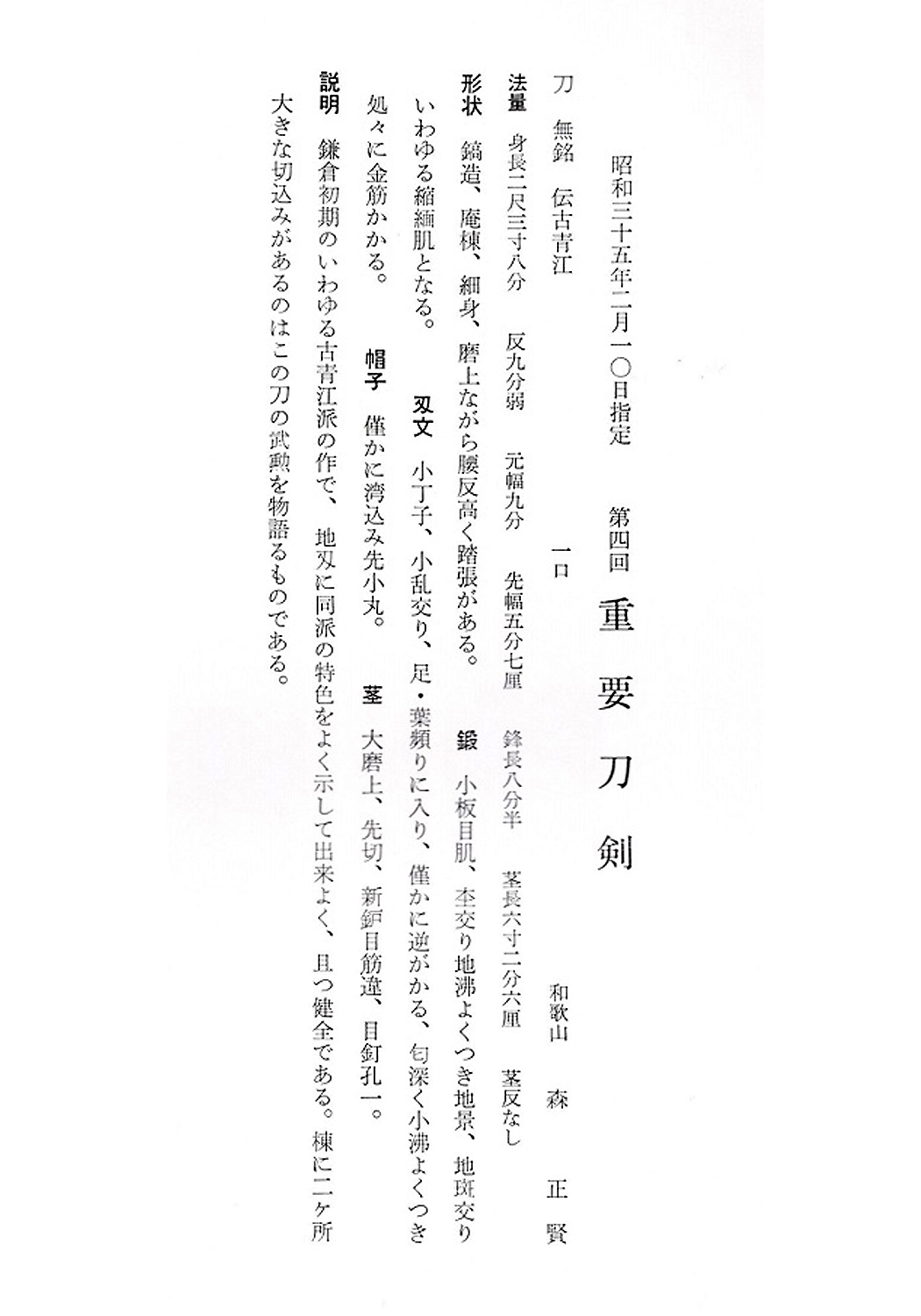 Jūyō-Tōken at the 4th Jūyō Shinsa held on February 10, 1960