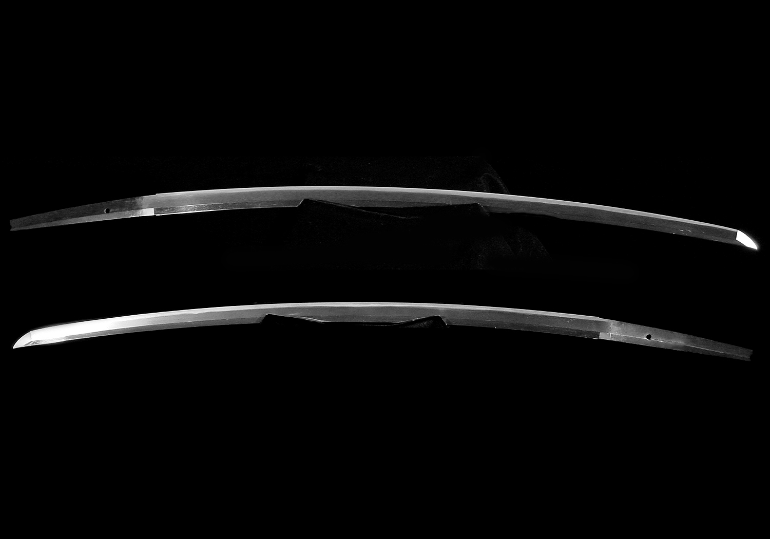 | SUGATA: | Extant works are limited to tachi only. Tantô must have also been produced, but none have been found to date the sugata is typical of the period being slender with a ko-kissakiand marked funbari. The koshi-zori is very deep and is distinguished from that of Bizen by the fact that the deepest part of the sori is at the habaki-moto. That is slightly farther down the blade than that of the Bizen and Yamashiro schools of that time. The sori in the upper part of the blade, however, is very shallow.