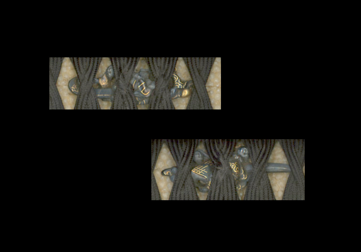 These fittings come in a custom made wooden fitted box which displays them well. Each of these pieces comes with NBTHK Hozon papers which attest to the validity of the signature and the quality of the work. I have no doubt that they would advance to Tokubetsu Hozon if submitted, but the person from whom I purchased them only submitted them for Hozon to verify that they were genuine.