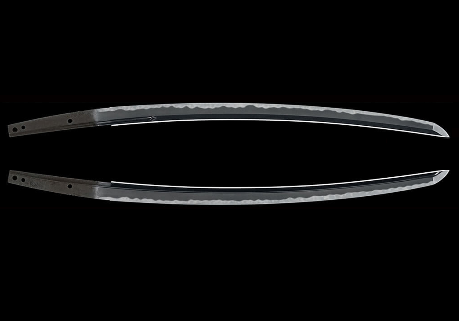 Nagamitsu (⻑光) was the son of Mitsutada (光忠) and succeeded as second generation of the Osafune (⻑船) School, and he one of the smiths, by whom the most signed works have survived from this time period. Judging from his existing body of work, it can be said that it is throughout of a high-quality level. The workmanship of Nagamitsu blades is either a flamboyant chōji-midare that can be directly linked to the style of Mitsutada, or is a calm suguha- chō, and it is possible that there were two generations Nagamitsu.