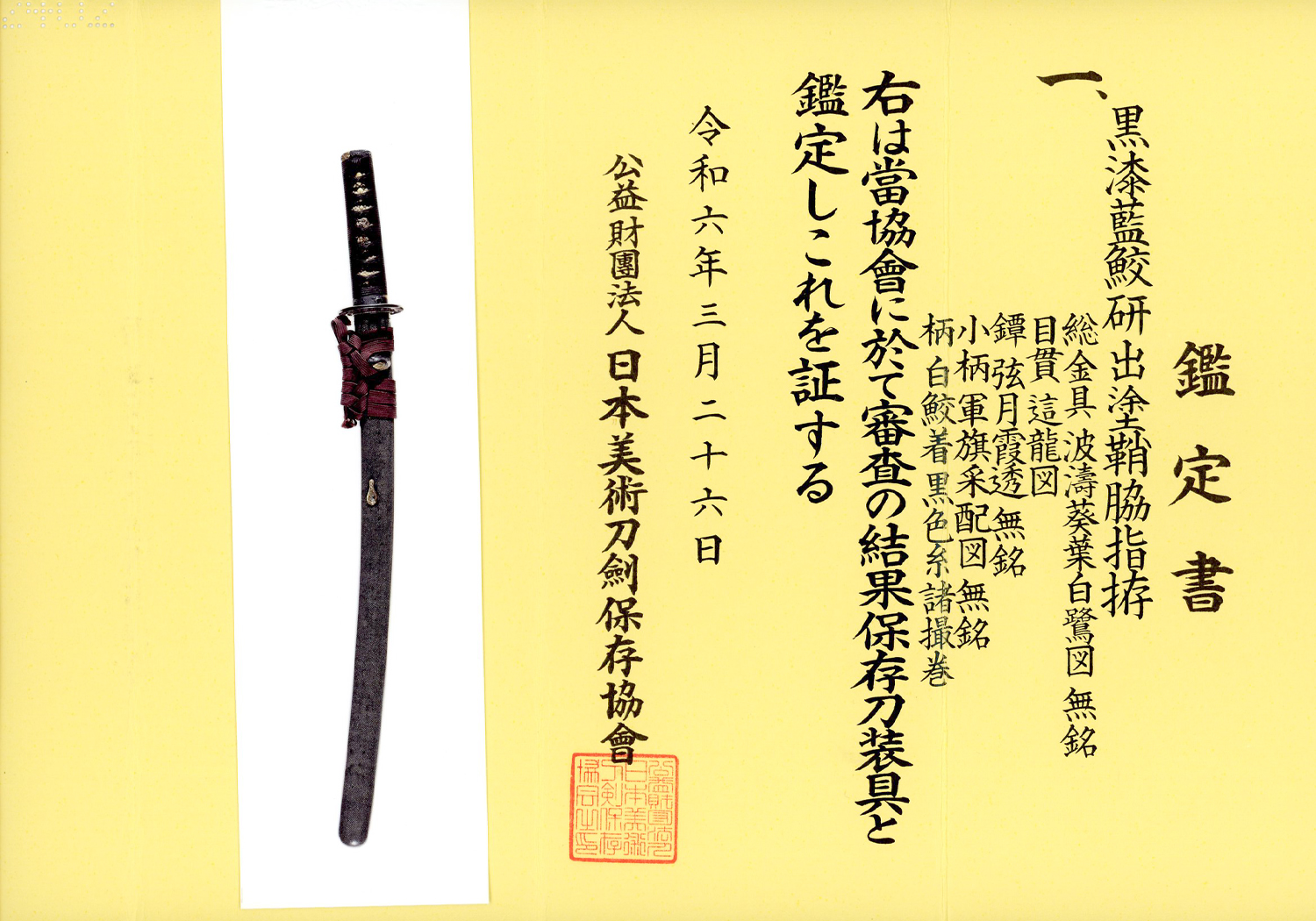 This sword was awarded Jûyô Tôken rank at the 35th Jûyô shinsa in April of 1989. A translation of the Jûyô description is as follows:
