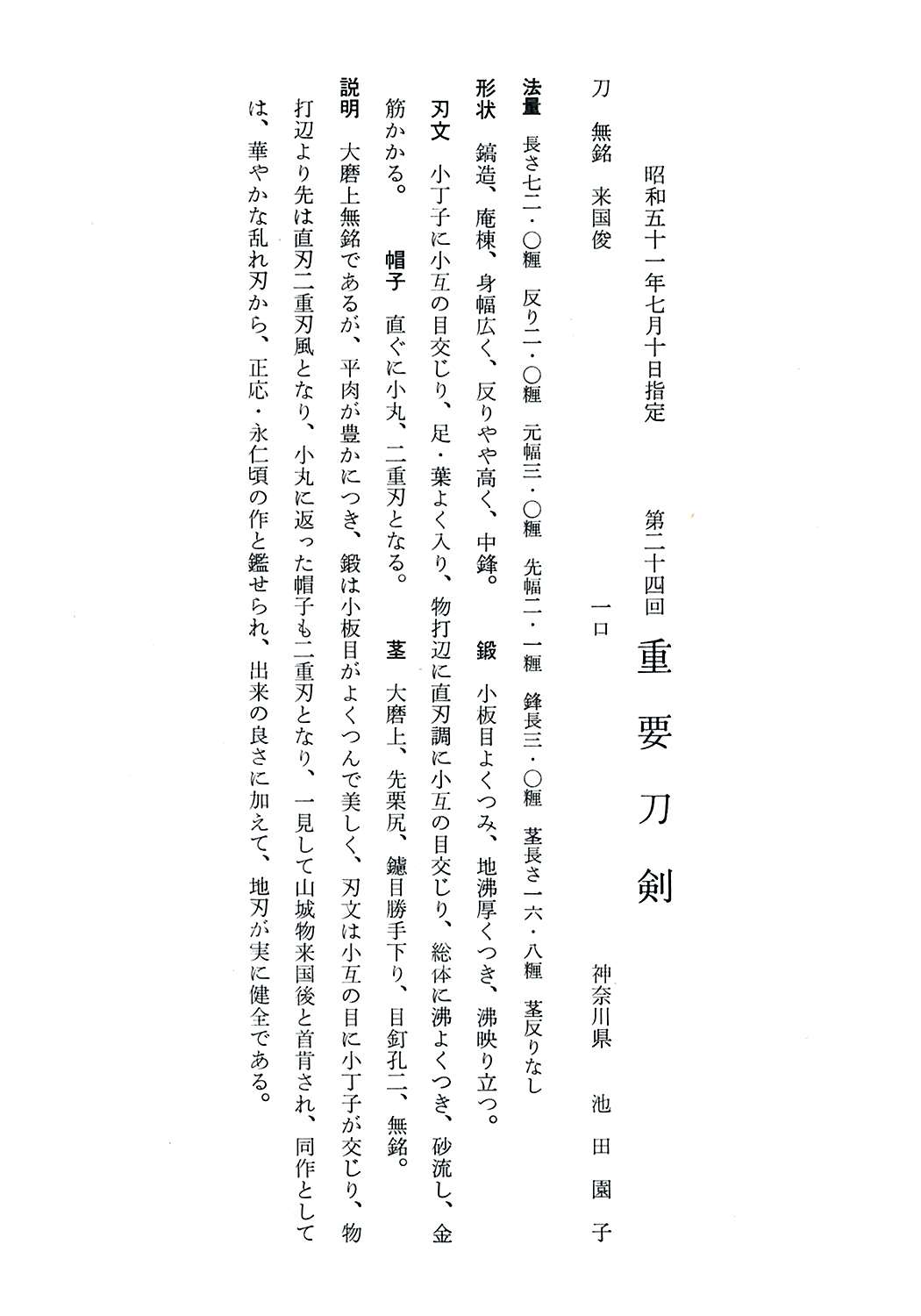 Jūyō-Tōken at the 24th Jūyō Shinsa held on July 10, 1976.