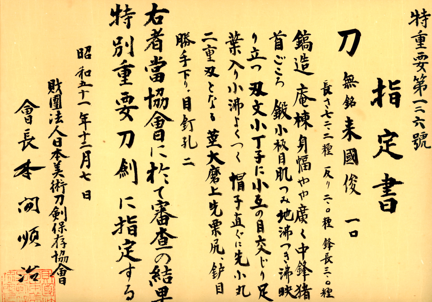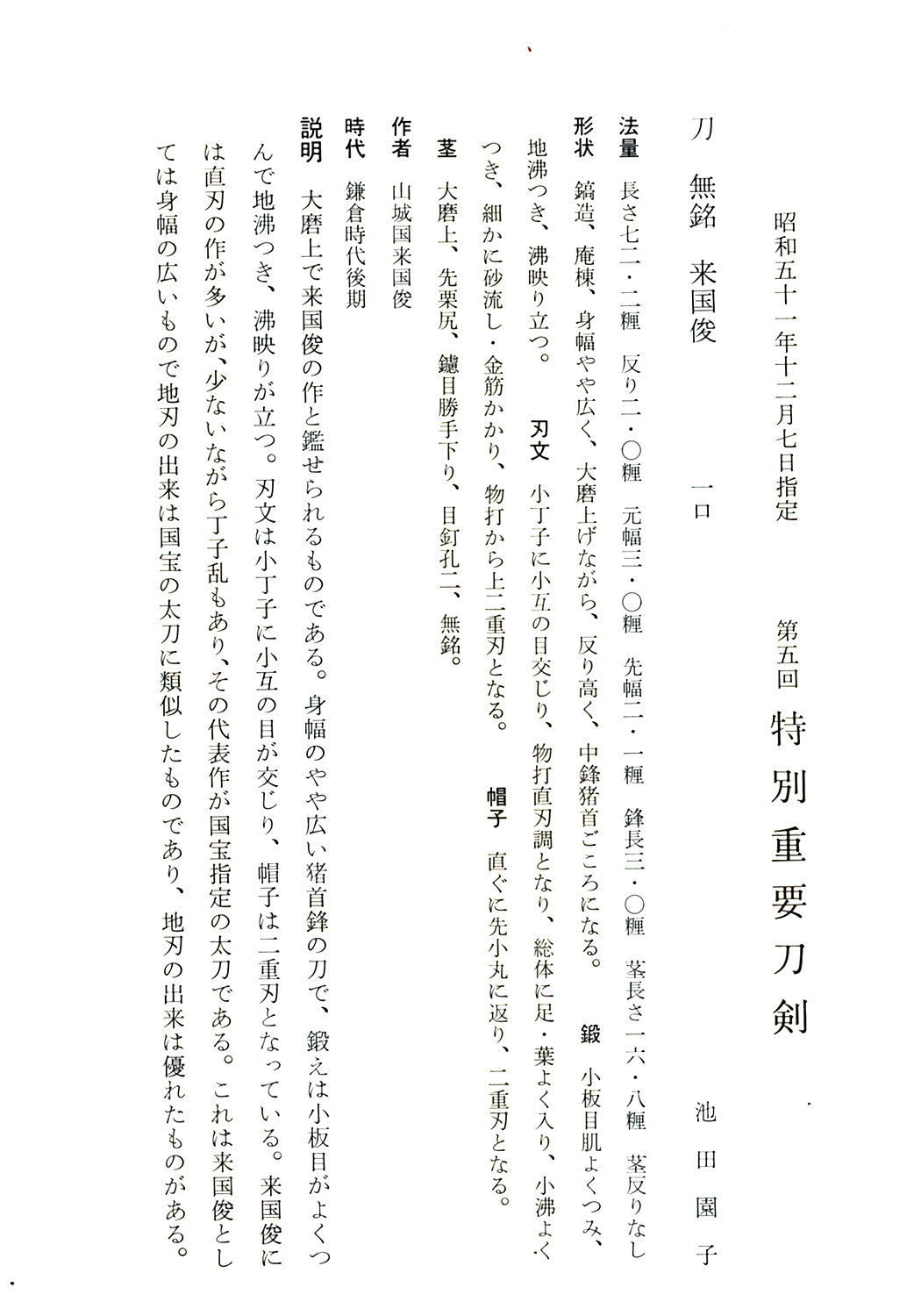 Tokubetsu-Jūyō Tōken at 5th Tokubetsu-Jūyō Shinsa held on December 7, 1976