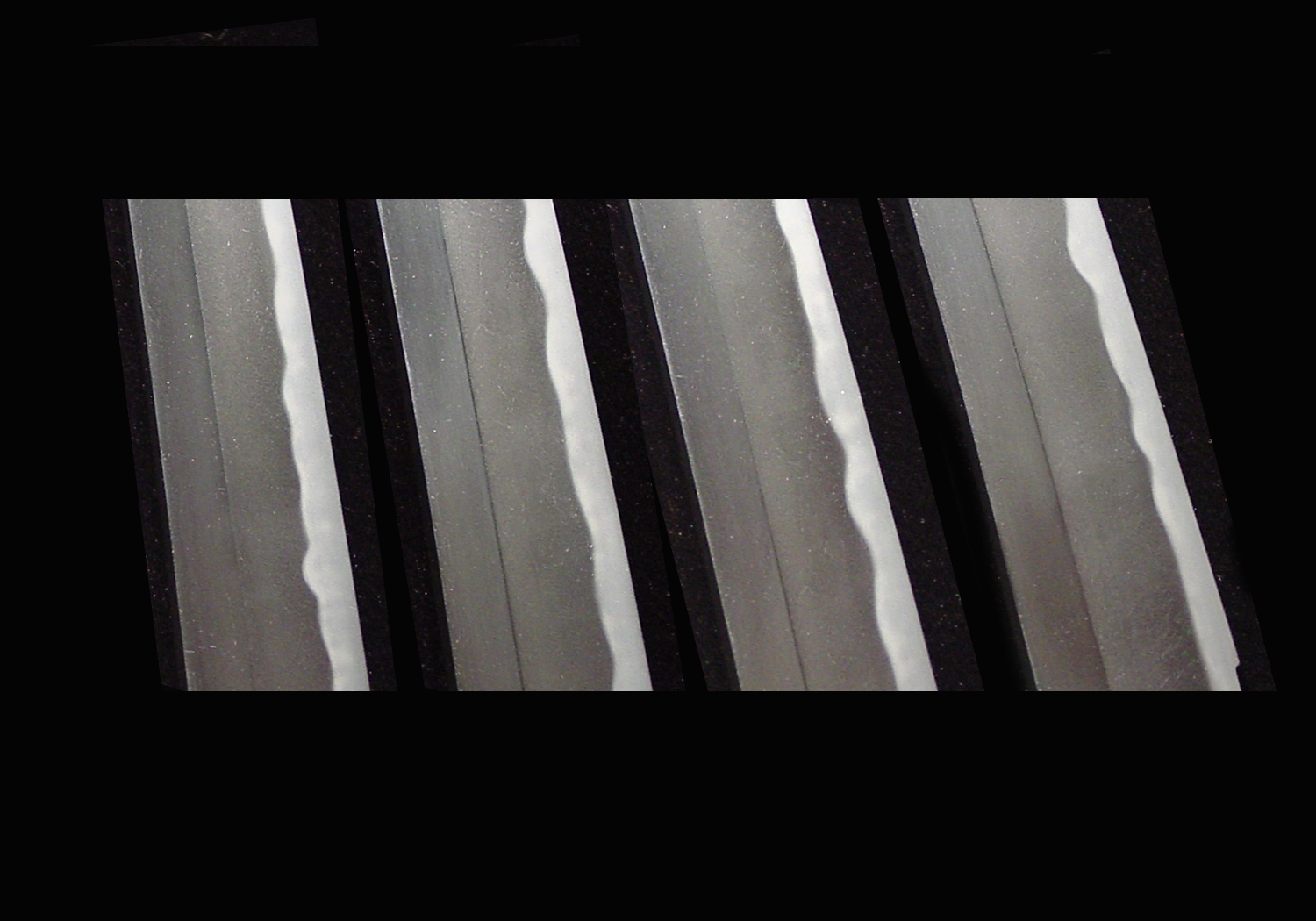 Picture 5: Changes in the hamon of Kunitoshi (chronologically from bottom to top).