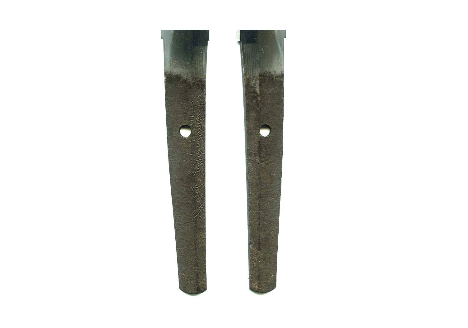 During the twelfth year of Tenshô (1584) Munetsugu (宗次) succeeded to the head of the family and as such he also became the head priest of the Tenman-gu shrine. In the eleventh year of Keichô (1606), Munetsugu (宗次) received the title of “Iyo no Jô” (伊予掾) and in 1608 he was appointed Jô Tsuka-no-Kashira. Jô Tsuka-no-Kashira is the person in charge of all of the Hizen smiths. This would theoretically put him above Tadayoshi I (忠吉) who was in charge of all of the Hashimoto smiths. In fact it is thought that the first generation Tadayoshi (忠吉) studied under the shodai Munetsugu (宗次) in his early career (before he went to Kyoto to study with Umetada Myôju (埋忠明壽)). Very early works by the first Tadayoshi (忠吉) closely resemble works by Munetsugu (宗次) and are very different from the later style that he developed after studying with Myôju (明壽).