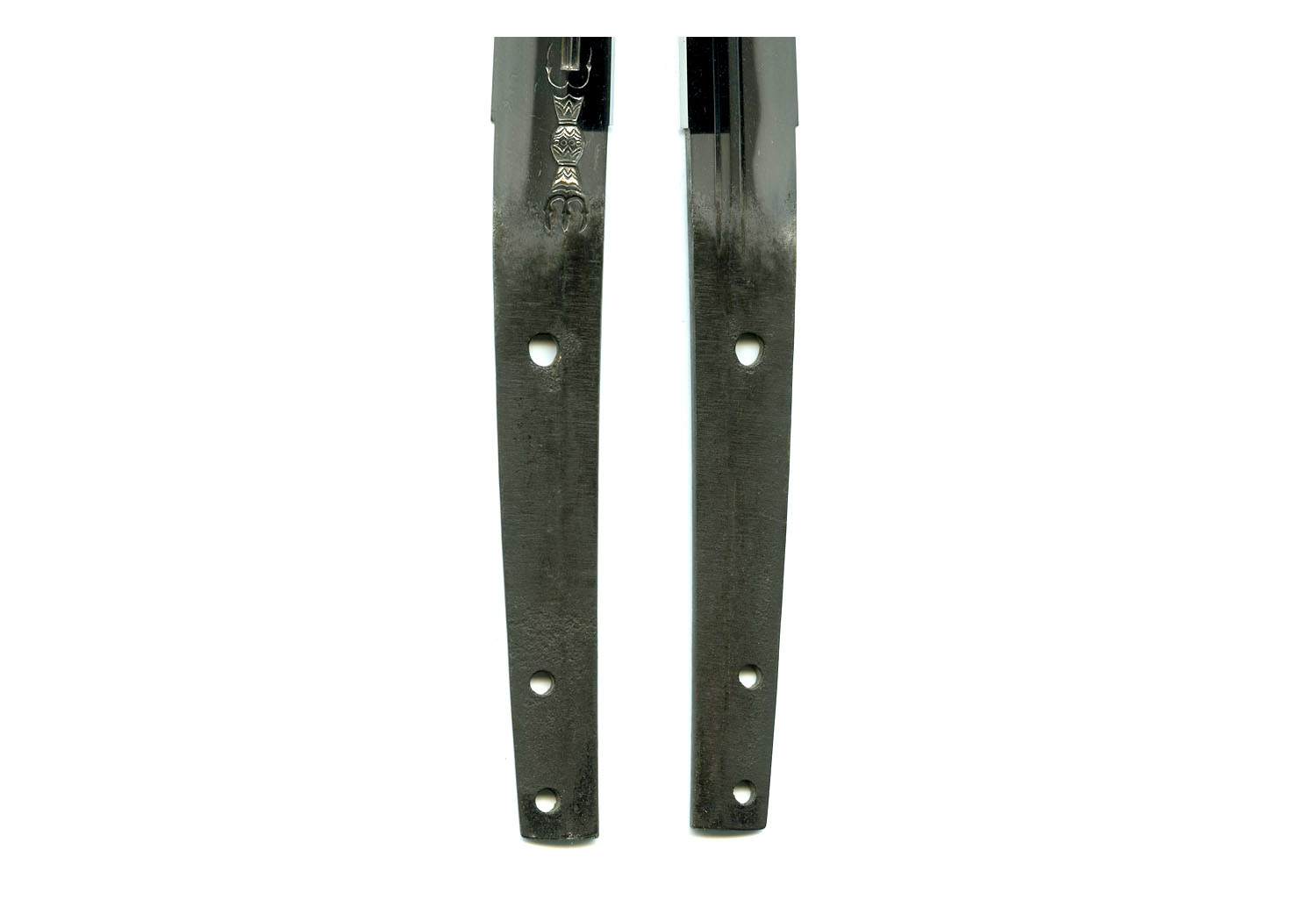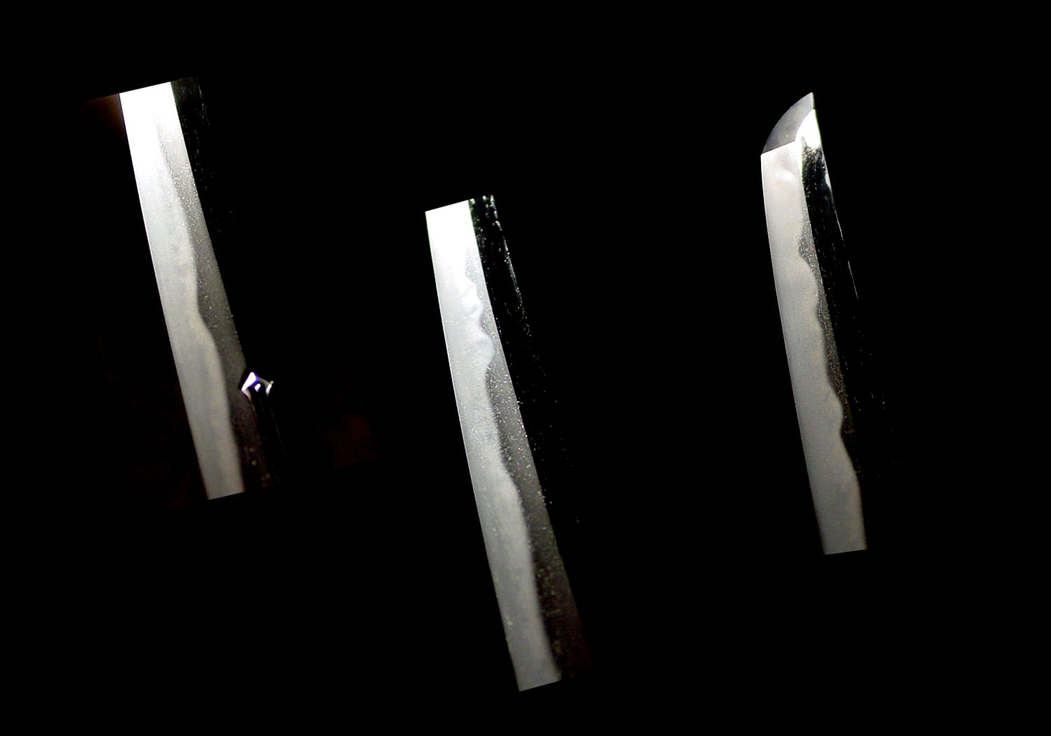 This blade is o-suriage mumei and has lost its original signature. Even though it has been shortened, it still has a beautiful shape and graceful koshi-sori measuring 0.64 inches or 1.6 cm. The length of the cutting edge of this blade is 27.25 inches or 69.2 cm. The width at the moto-haba is 1.13 inches or 2.9 cm and the saki-haba is 0.78 inches or 2.0 cm. The kasane is 0.24 inches or 0.6 cm.