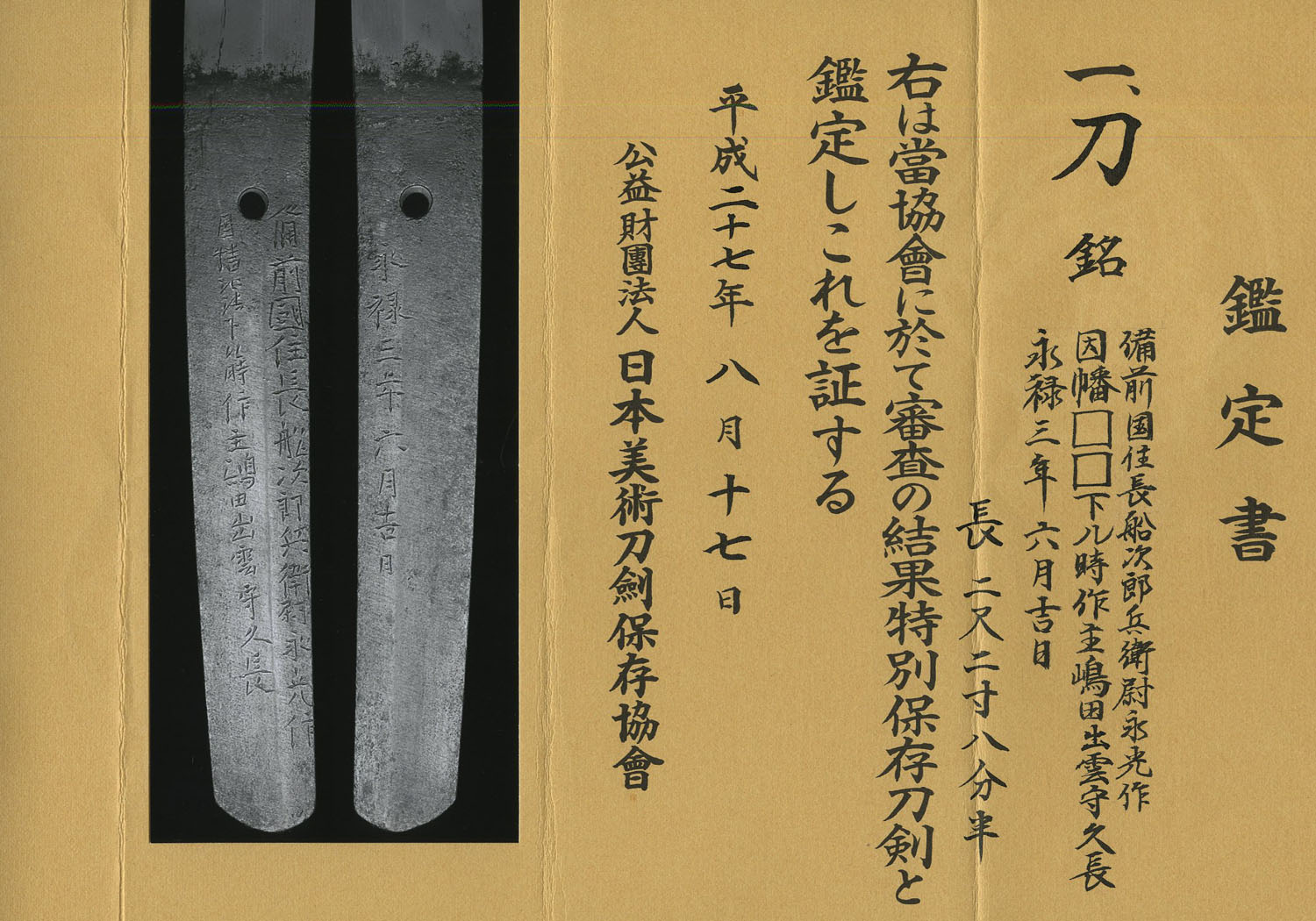 The ura side of the blade has the nengo:
