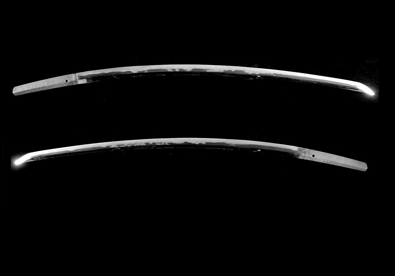 Unlike the earlier Sue-Kotô (late Kotô) blades of circa Meiô to Eishô (1492-1521) when the average lengths are around two shaku, one-sun (25 inches), blades dating to Eiroku such as this blade tend to have lengths of around two-shaku, three-sun.  This change in length is generally attributed to the increased pace in fighting.  For example, in 1560 when this blade was made, the Imagawa were defeated by Oda Nobunaga and the country was at the height of the Sengoku period of constant warfare.