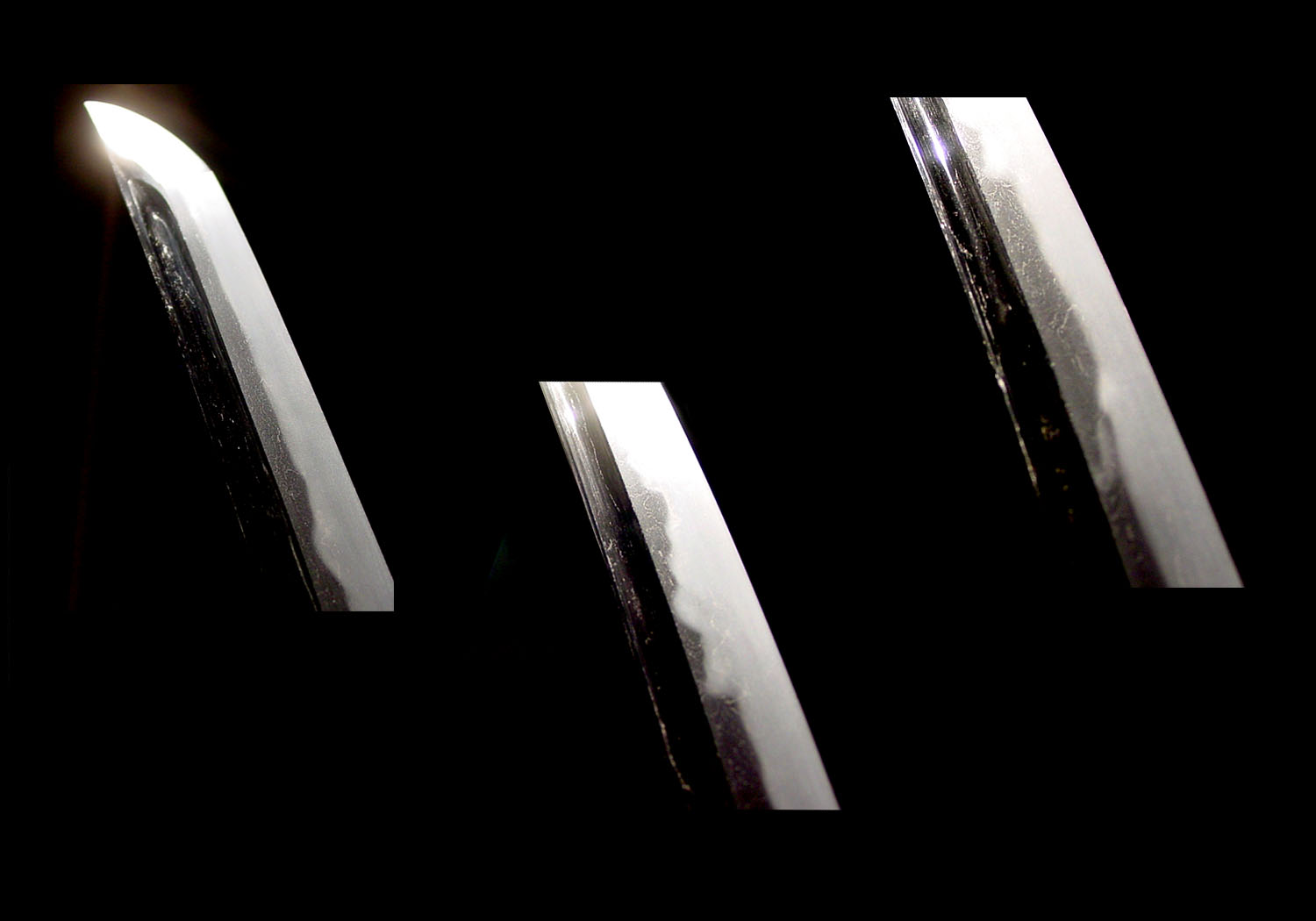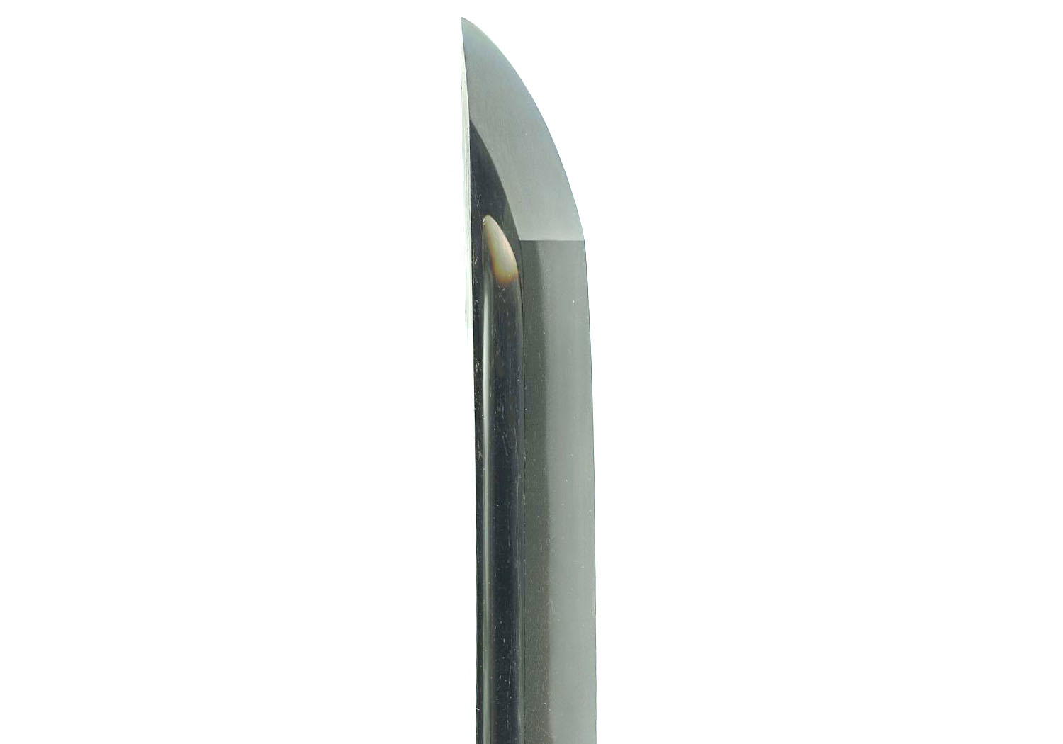 In keeping with these changes, this blade has a cutting edge of 27.25 inches or 69.2 cm.  It is a wide and powerful blade with a moto-haba of 1.16 inches or 2.9 cm and a saki-haba of 0.88 inches or 2.2 cm.  It has a deep koshi-sori of 1.03 inches or 2.6 cm.  There are bô-hi on both sides ending in maru-dome (round shape) just above the habaki.