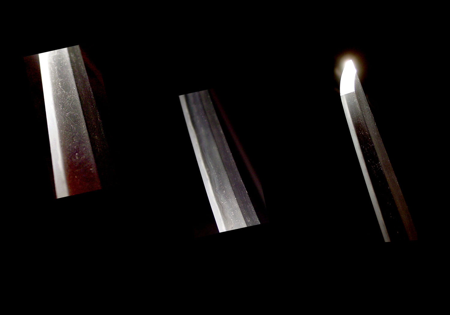 The jigane is whitish and the hada is ko-mokume mixed with areas of o-hada. There is masame hada in the shinogi-ji. The hada is quite beautiful. The hamon is suguha mixed with ko-gunome. The boshi is strong and well tempered. The blade is in excellent polish with no flaws or problems of any kind.