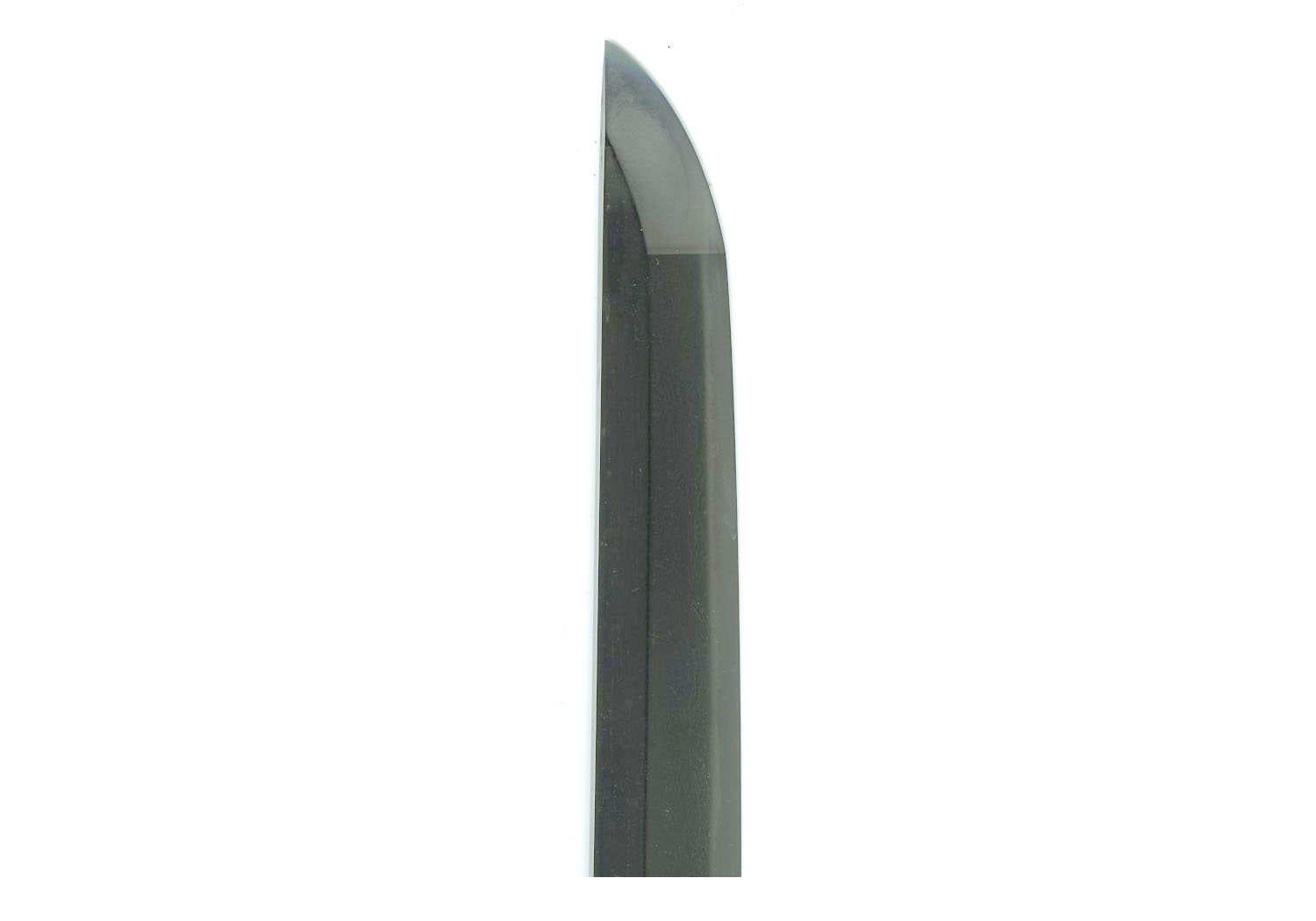 The Hokke school was an offshoot of the Bingo Mihara group that traced its roots to the Yamato tradition of the Kamakura era. Yamato influences can be enjoyed in this blade also. Although it is o-suriage, it still is of a length that exudes strength and power. The cutting edge is two shaku, three sun, and five bu. This equates to 28 1/16 inches or 71.3 cm. The moto-haba is 1.11 inches or 2.8 cm and the saki-haba is 0.74 inches or 1.9 cm. The sori is still graceful and beautiful even after it has been greatly shortened. It is torii sori measuring 0.55 inches or 1.4 cm.