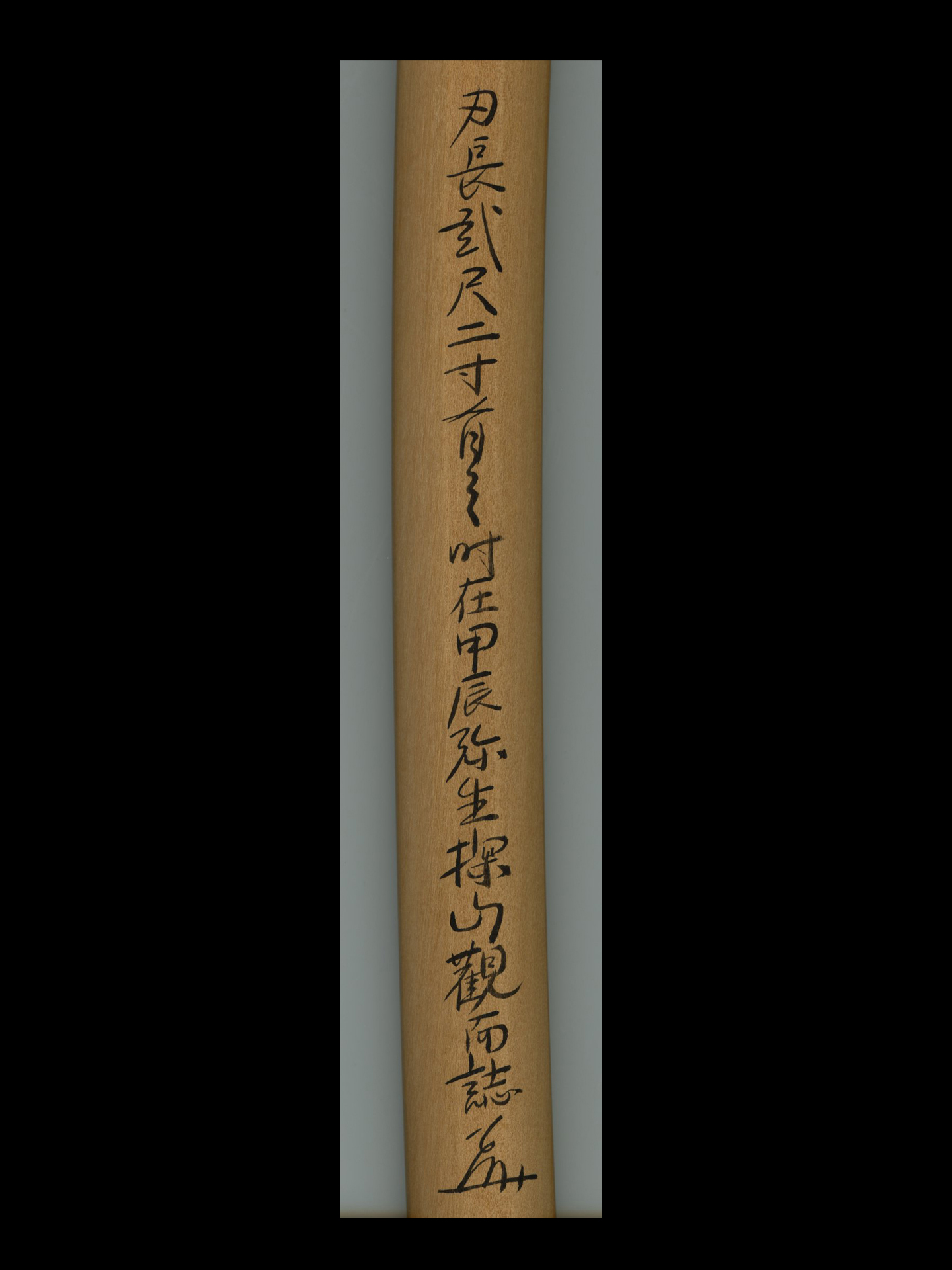 Blade length ~ 66.7 cm (26 1/4 in.); examined and written by Tanzan [Tanobe Michihiro] in March in the year of the dragon (2024) + monogram.