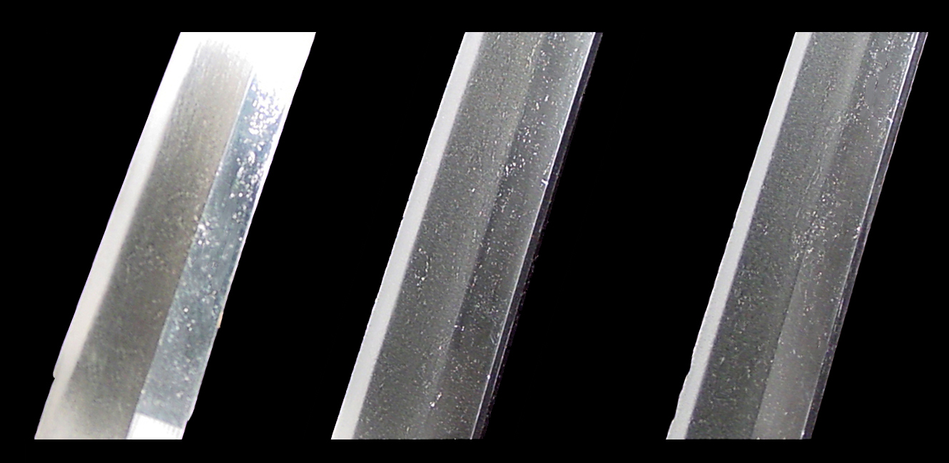 Works by Sukehira will find a hamon with some of the following traits. Narrow ko-midare mixed with ko-chôji, ko-gunome, and ko-notare on the basis of sugu-ha in thick ko-nie deki accompanied with thick nioi-guchi. Ko-ashi, fine sunagashi, kinsuji, hotsure, uchinoke, and double and triple-layered yubashiri can be found.