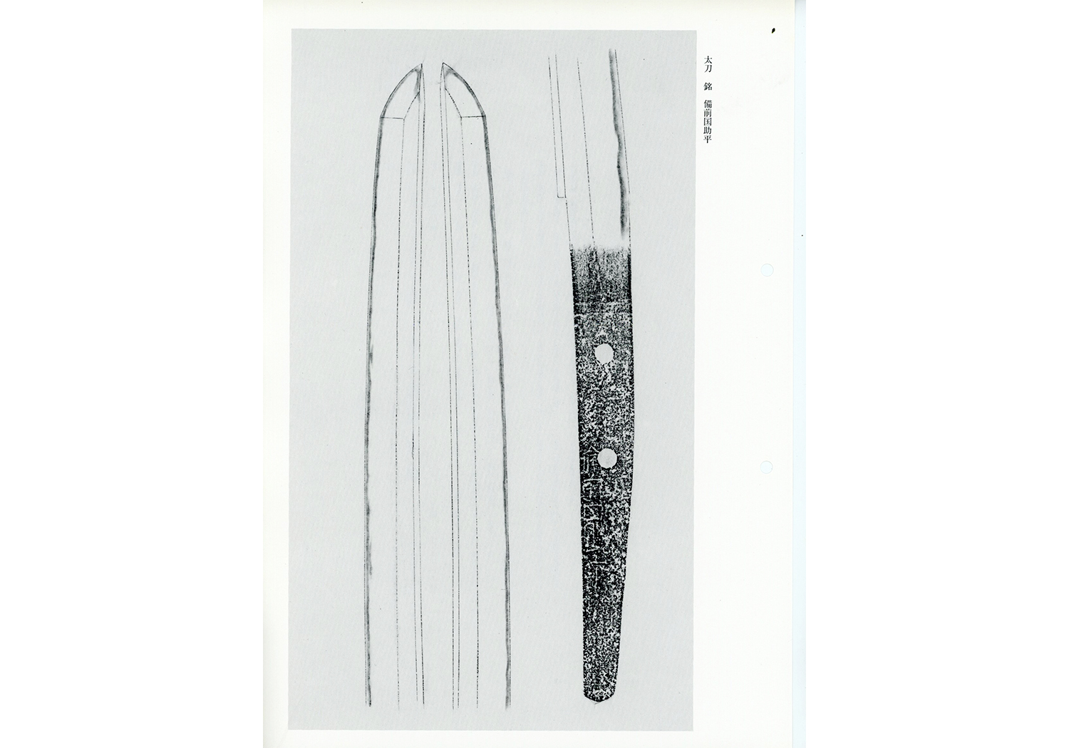 生茎僅カニ区ヲ送リ棟目立ッテ丸ク五字銘有之細身・小鋒デ腰反高ク踏張ツキ華奢ナ形態ヲ呈シ地銕ハ小板目良ク錬レル精美ナ肌合ヲ見セ濡色デ地沸ツキ地景入リ温潤ナリテ刃文ハ細直刃小乱ニ小互乃目交ジリ小沸付キ小模様ノ砂流・金筋・打ノケカゝリ帽子ハ丸ク掃掛ケルナド古雅ノ趣ヲ湛ヘ滋味豊カナ優品也同工ハ古備前三平ト称サレ包平・高平ト並ビ現存作稀有之