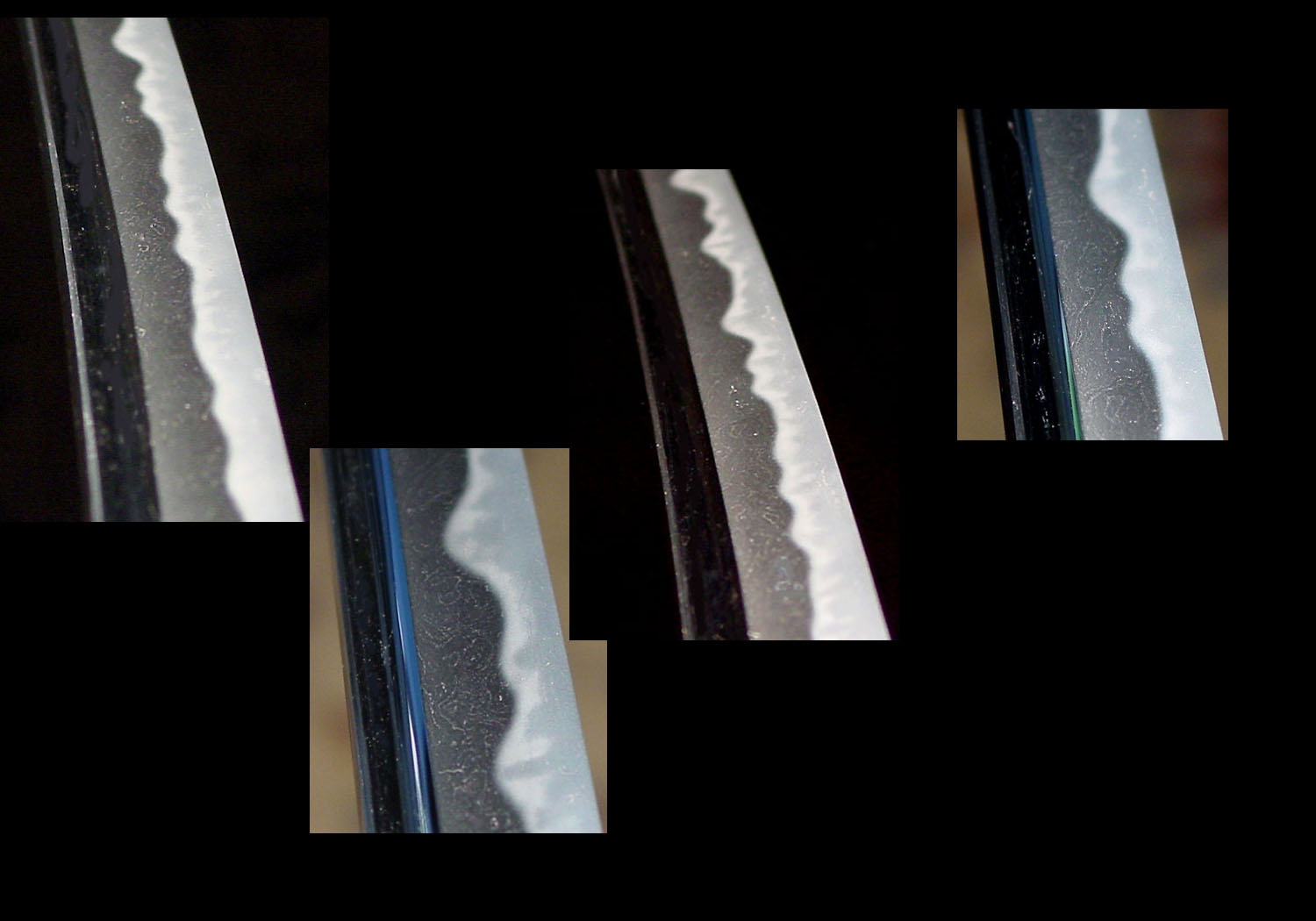 The works of Morikage (盛景) of the Ômiya (大宮) branch were largely similar to that of Kanemitsu (兼光) of the main line. Upon close comparison, however, one notices differences in overall quality, fineness of the jihada, prominence of the utsuri, etc. This closely parallels the relationship and differences in the works of Kagemitsu (景光) of the main line and Chikakage (近景) of the branch line of Bizen Den during the Kamakura era.