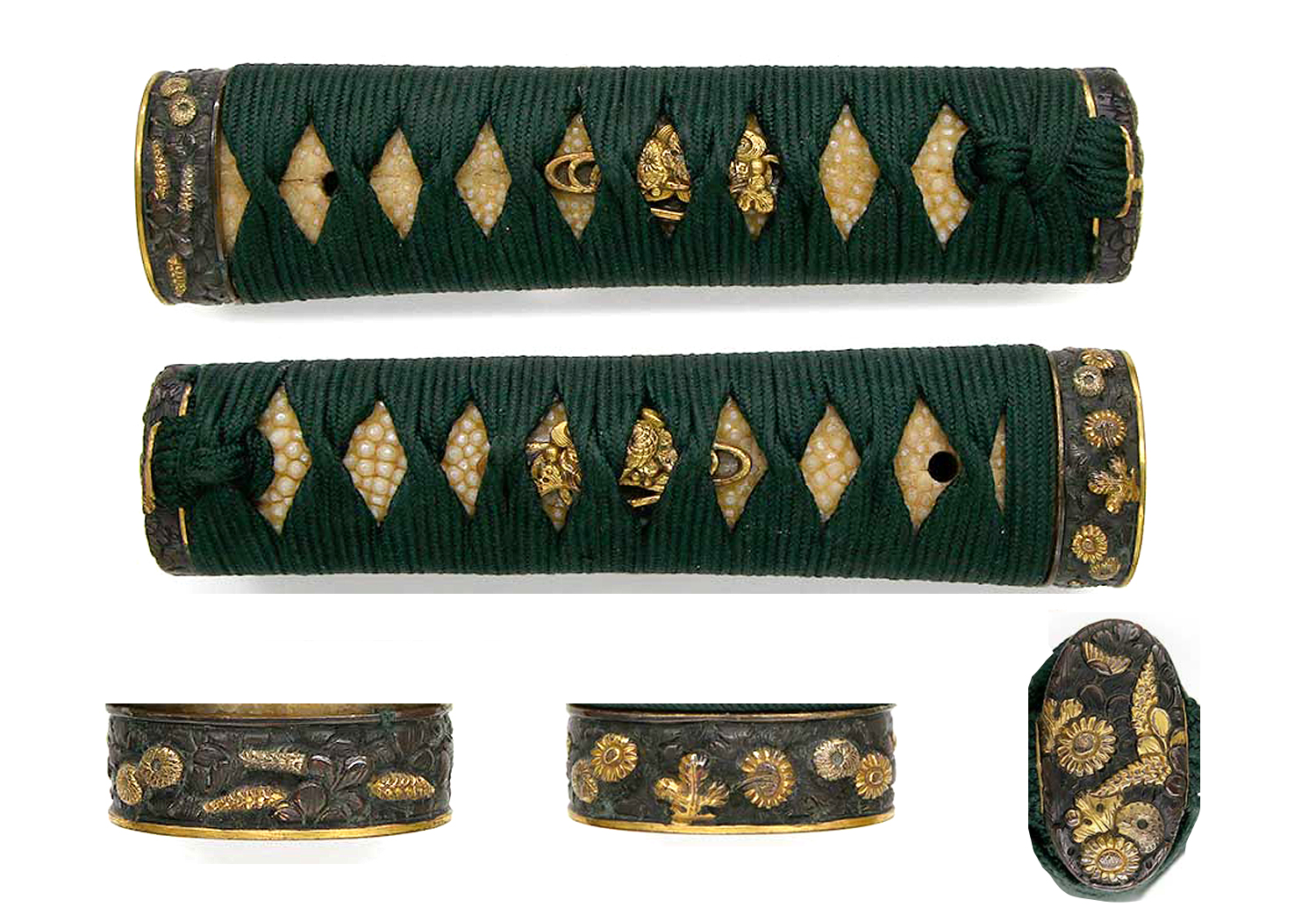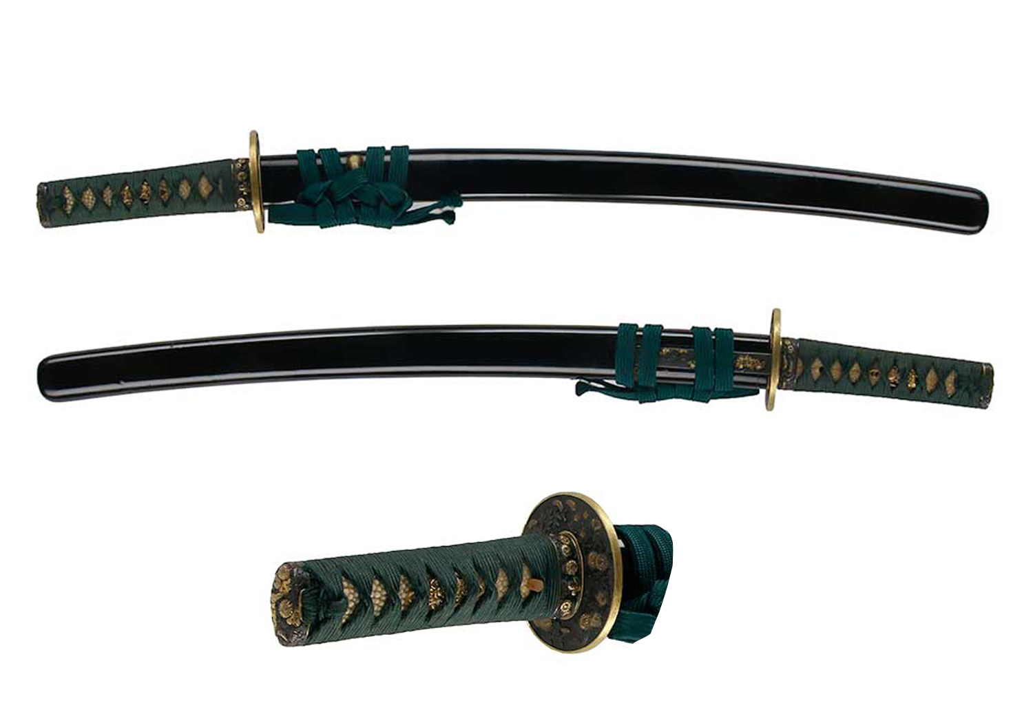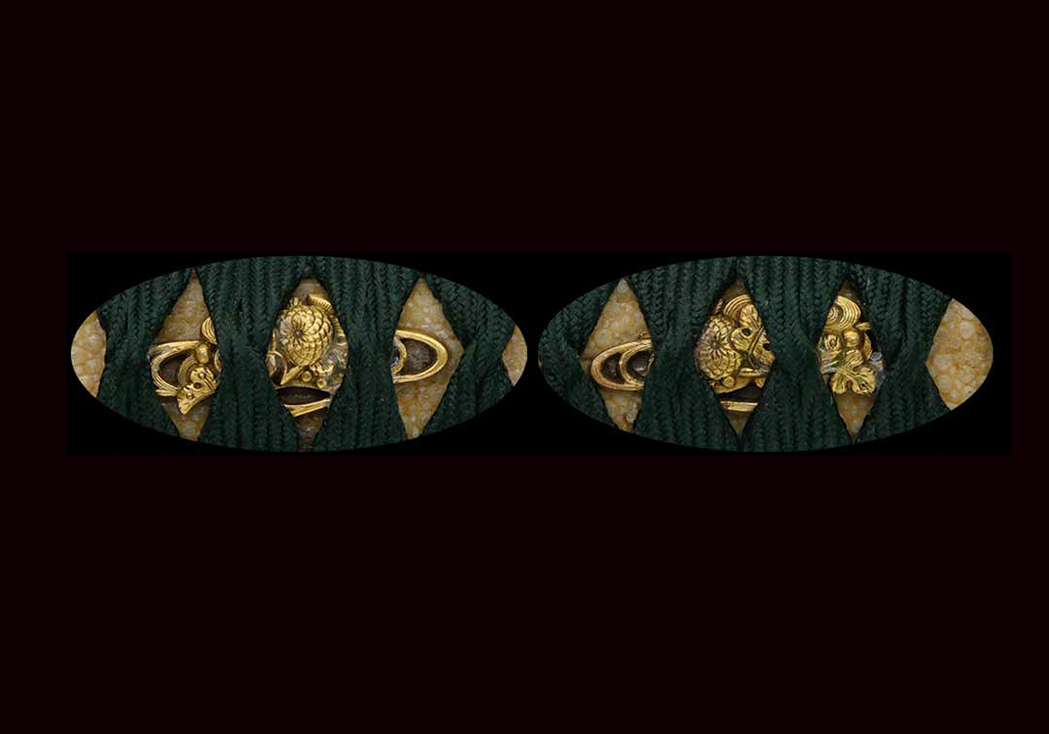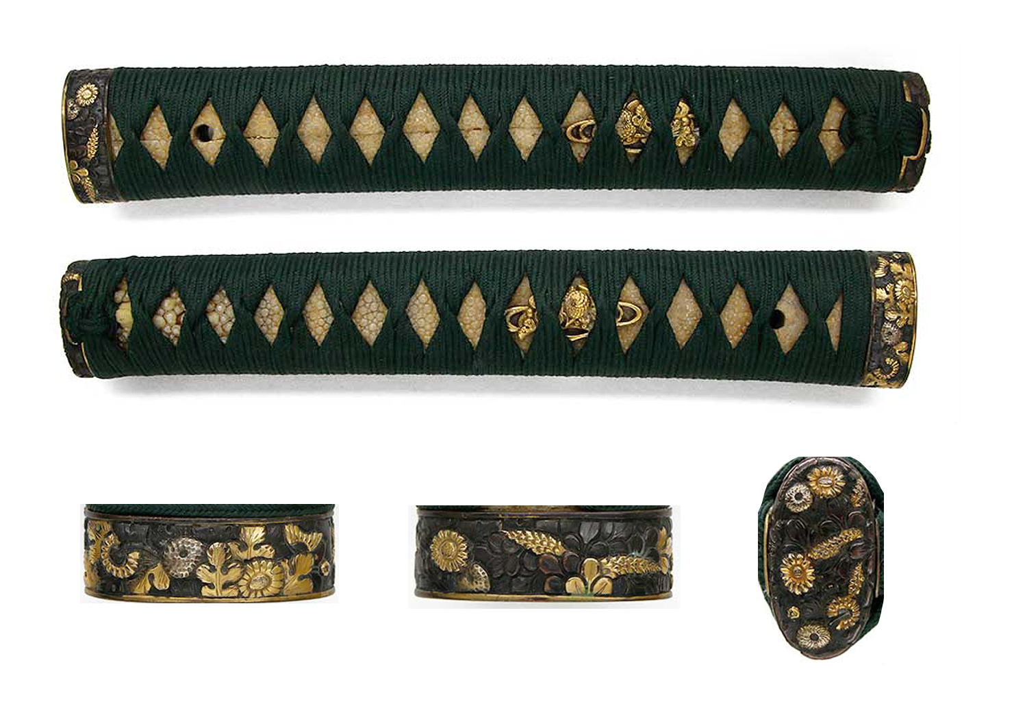 These swords come in a very attractive set of matching daisho koshirae as shown in the photos below. Both sets of mountings are in excellent condition and completely matched. This is a daisho that was carried by high ranking Samurai during the Edo era and was treasured and cared for by its owners. Both blades are in excellent condition, good polish, have no flaws and, as previously noted, both have been awarded NBTHK Tokubetsu Hozon papers attesting to their authenticity and high quality.