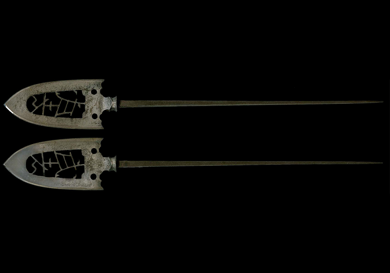 If you look carefully you will see one support piece on the kanji. Look at the 4 o’clock and 8 o’clock positions on the close-ups of the point and you will see it. It was not meant to be polished but intentionally left dark sothat it will be less visible. It is very difficult to create this kanji in the blade of the yanone. This is a late Edo piece with no damage to the blade or the openwork.