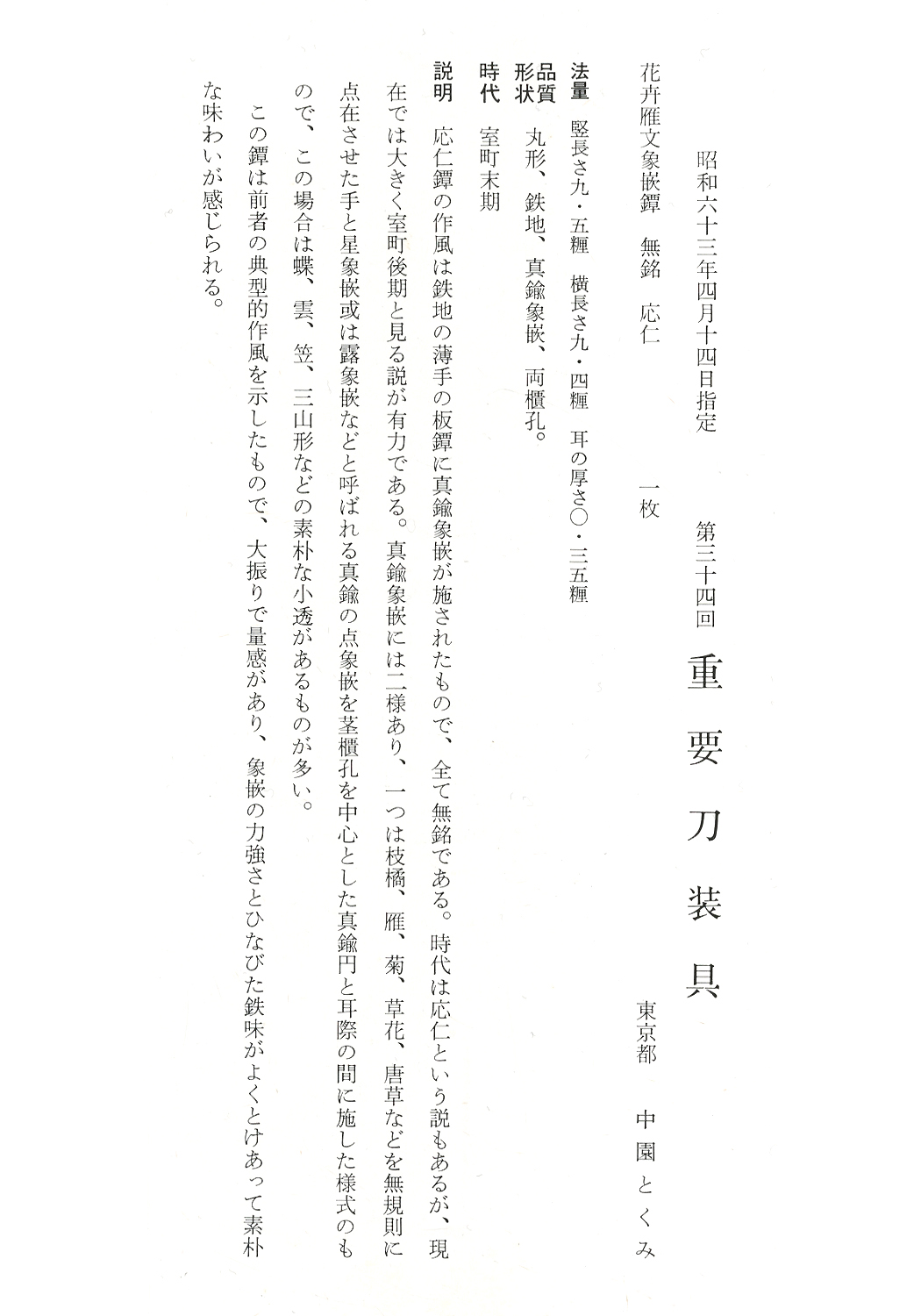 Designated as jûyô-tôsôgu at the 34th jûyô-shinsa held on April 14th 1988