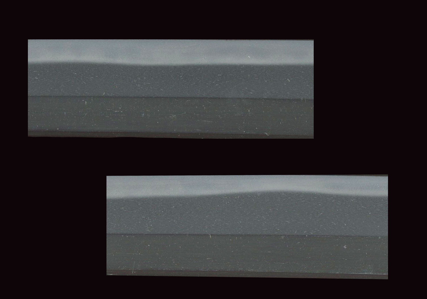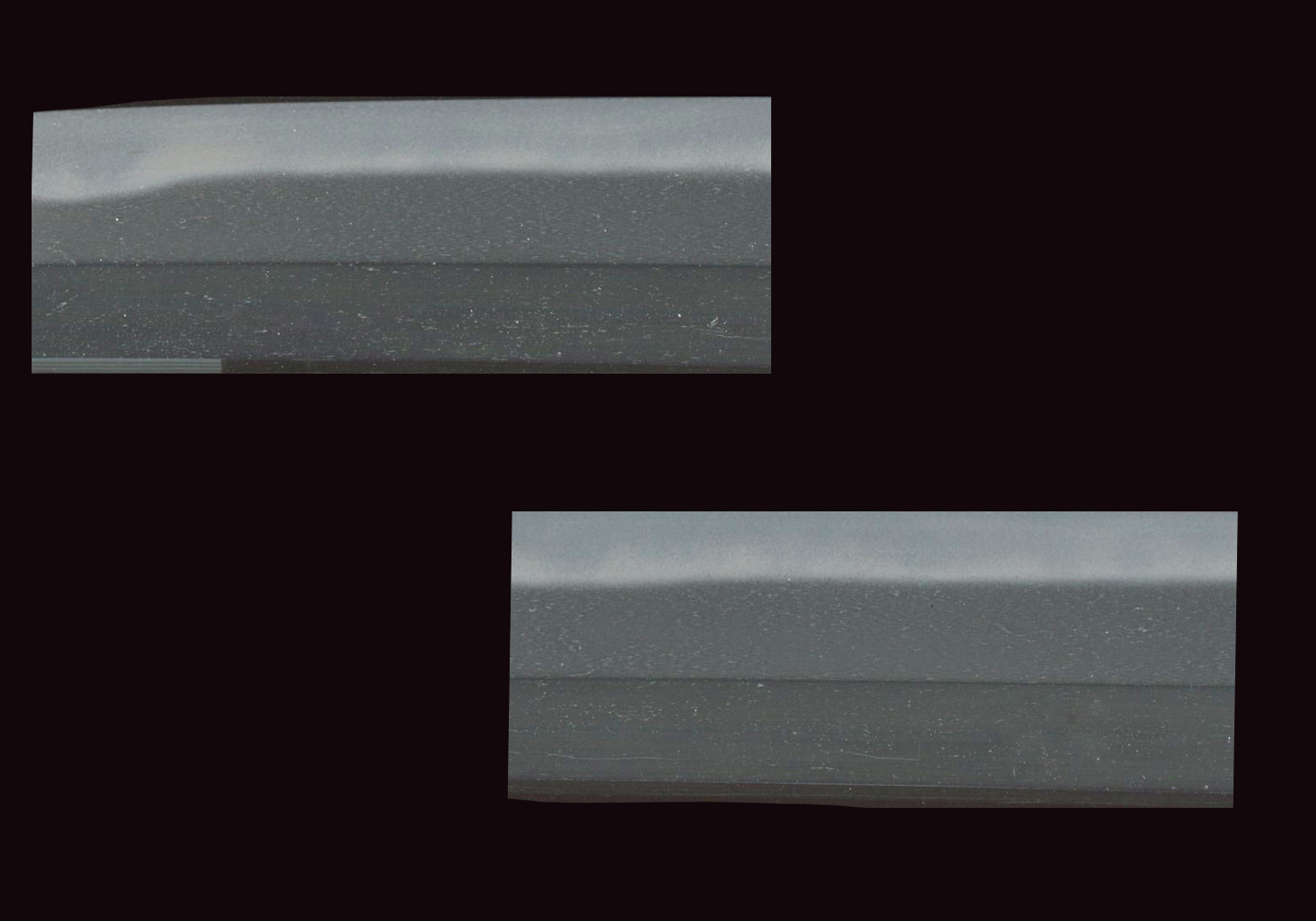 JITETSU: The jitetsu is flowing mokume mixed with masame. The mokume-hada appears along the shinogiand into the ji area with the masame-hada along the edge of the hamon. This is called Shikkake-hada. There is abundantly fine ji-nie.
