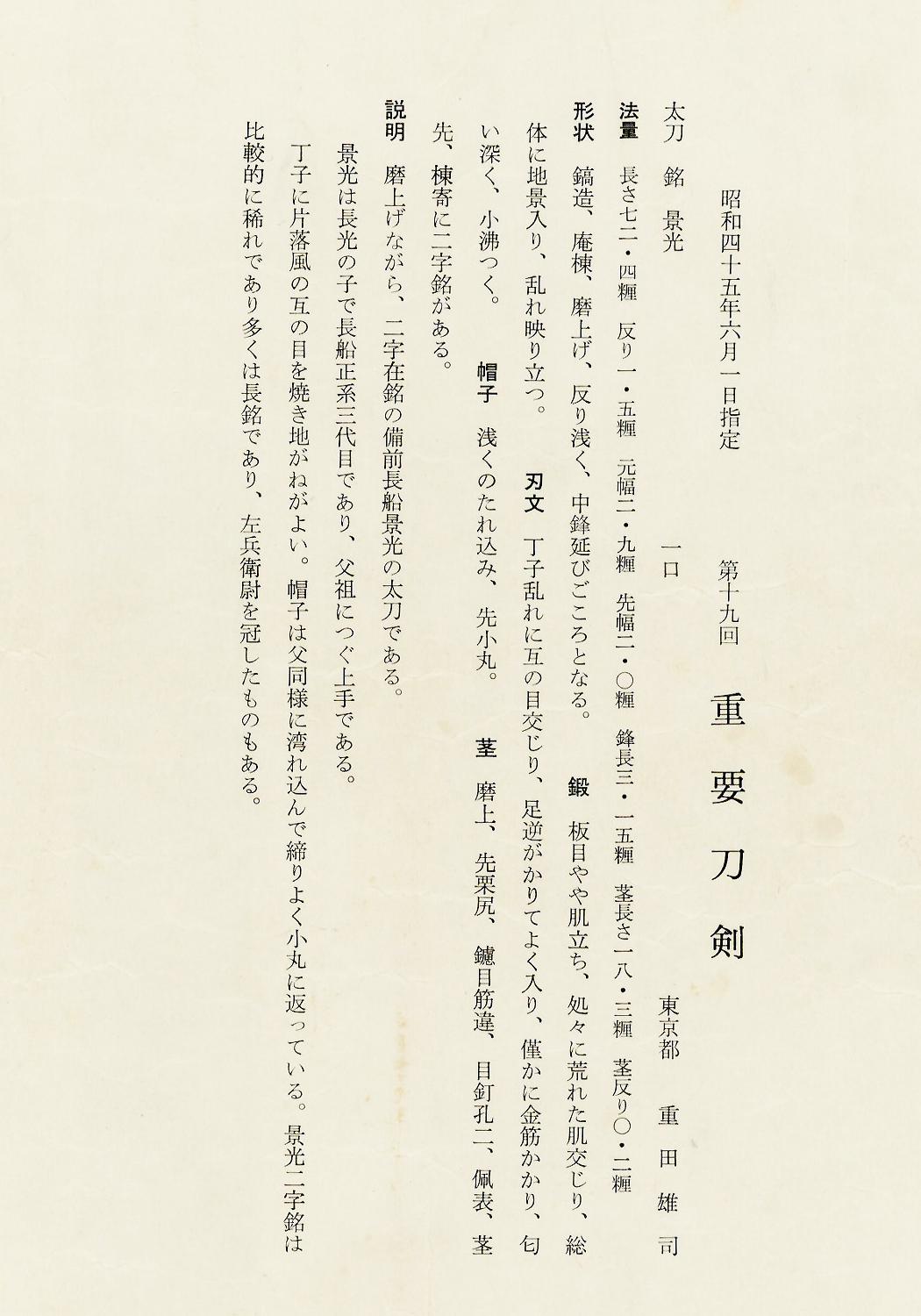Jūyō-tōken at the 19th jūyō shinsa from June 1, 1970