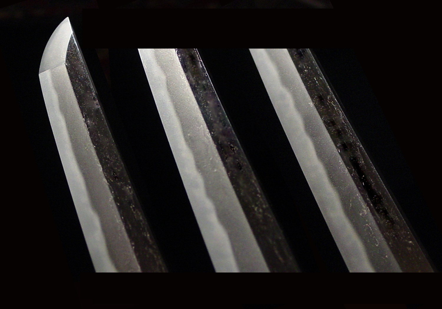 Jitetsu: The kitae is ko-itame mixed with small mokume, making a fine and beautiful grain. The ji-nie is also fine and the midare-utsuri or choji-utsuri will appear in a pronounced manner. Occasionally one with bo-utsuri will be found which is perhaps a forerunner of the bo-utsuri found in Bizen works of the Muromachi Era.