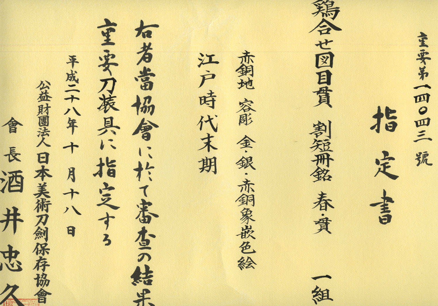 Jûyô-tôsôgu at the 62ndJûyô shinsa held on October 18, 2016