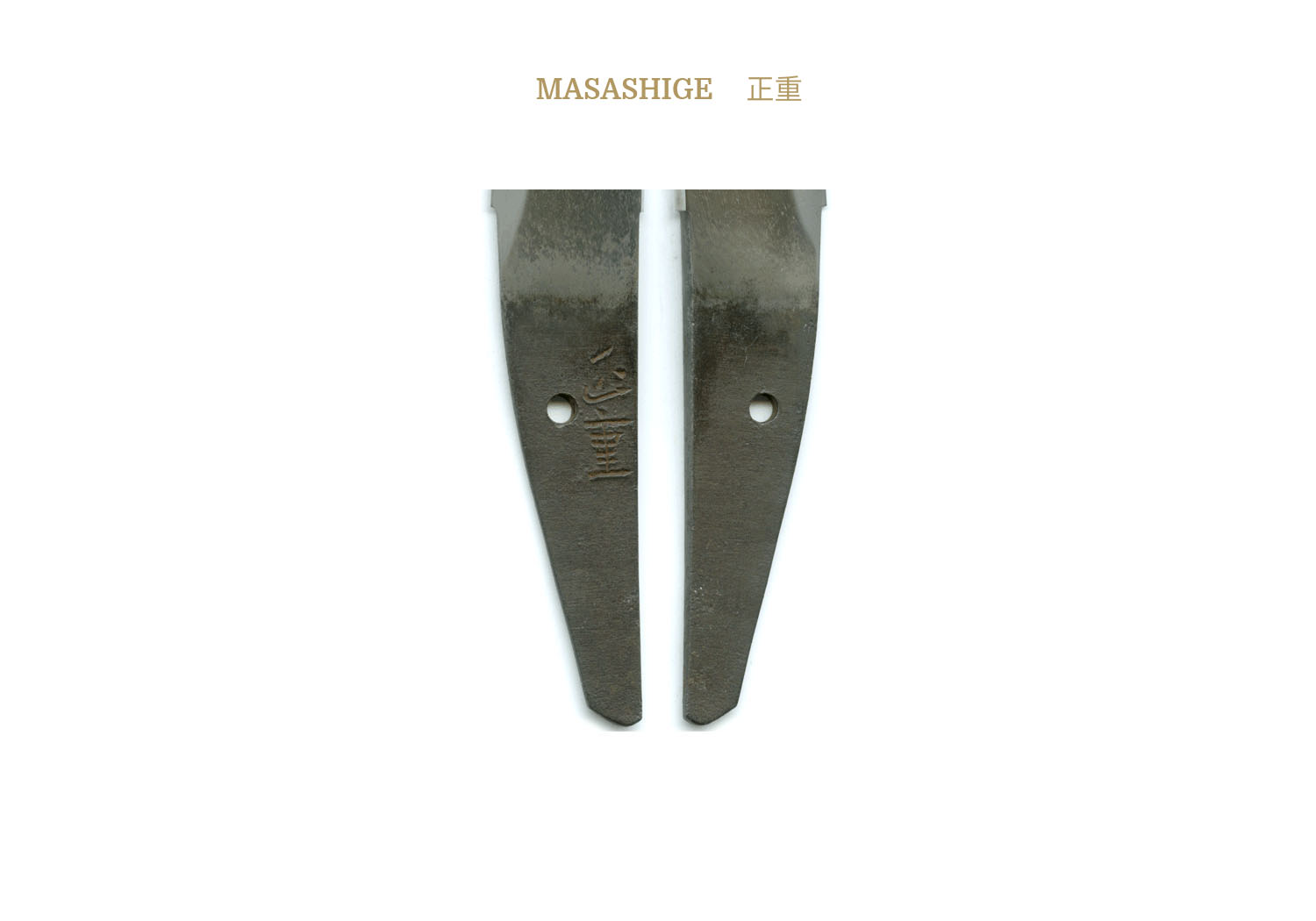 His workmanship was like that of Muramasa (村正) but the sugata of his katana seems to be a little weak. Generally Masashige’s (正重) wakizashi and tantô will be larger and the sakizori more pronounced than the works of Muramasa (村正). As for tantô, sun-nobi are the most common, the sori is strong, and the kasane is thick. As one would expect, the quality of his works do not reach the level of quality of the Nidai Muramasa (二代村正) whose works he emulated. His nakago is a strong tanago bara and his mei has a deep tagane and are ni-ji mei. The influence of the Sôshû school is more evident in his works than in the works of the Nidai. The blade shown below is an excellent example of his work.