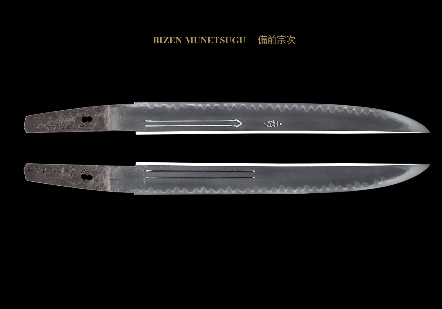 1. Hira-zukuri tantô, ha-watari of less than 30 cm in length with mu-sori. – The Oei Bizen 応永備前 school (Yasumitsu 康光, Morimitsu 盛光); Nobukuni 信国.