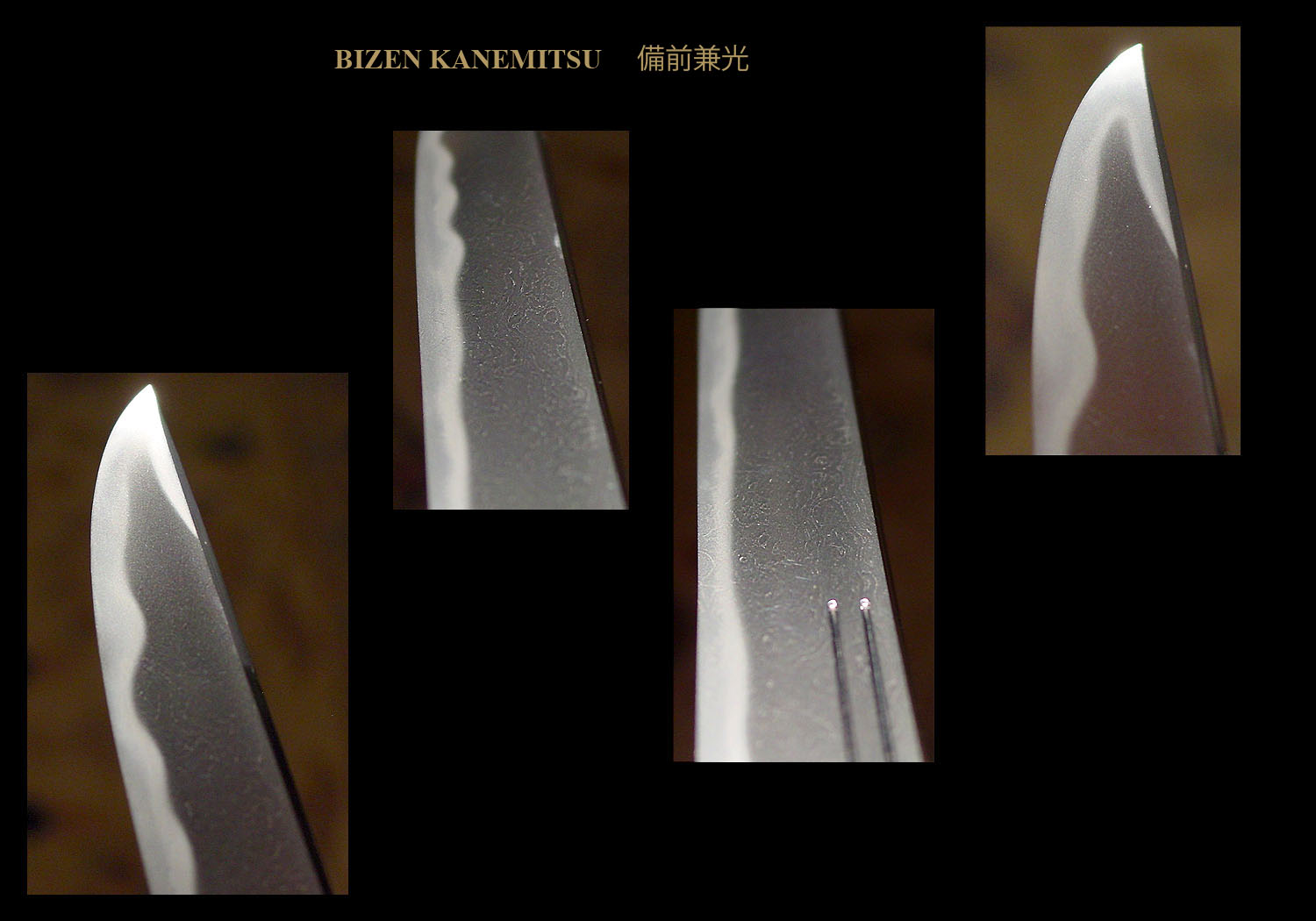 The hamon of the tantô of this period is like that of tachi except they lacked the chôji midare hamon.  The gunome midare and suguha of such smiths as Nagamitsu and Kagemitsu is representative of the types of hamon produced on Bizen tantô.  Yamashiro blades continued to show the suguha of former times for the most part, but we find exceptions in the midare hamon of some of the Rai smiths.