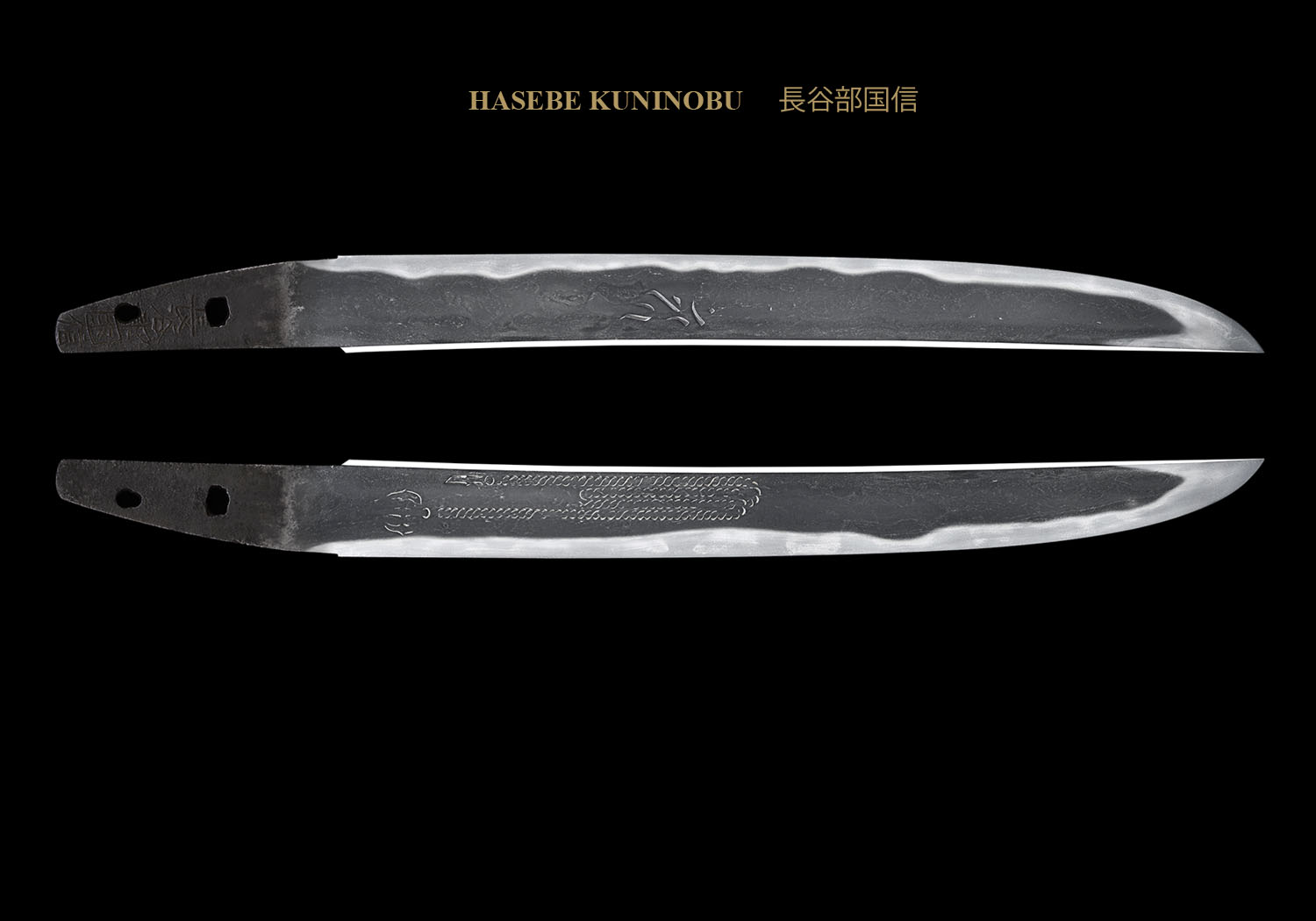 2. Kanmuri-otoshi-zukuri with mihaba in proportion and mu-sori. – Tegai Kanezane 手搔包真; the Nio 二王 school (Kiyonaga 清永, Kiyokage 清景).