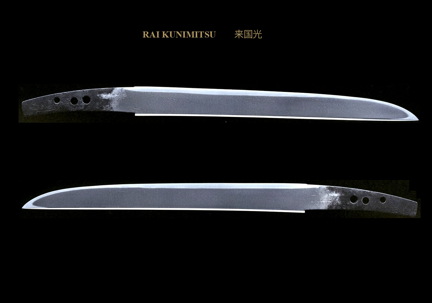 1. Hira-zukuri tantô with a length of about 28cm, mu-zori, or very shallow sori. Width that is a little wider than the middle Kamakura Period:  — The Rai 来 school (Kunimitsu 国光, Kunitsugu 国次, Sadamune 貞宗, e.g)