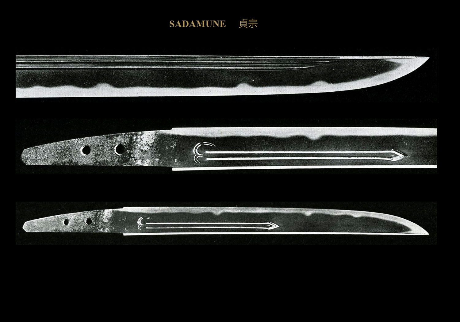 4. Katakiriha-zukuri with mu-zori or very shallow sori: —  Sadamune 貞宗, Osafune Kagemitsu 長船景光, Takagi Sadamune 高木貞宗, e.g.