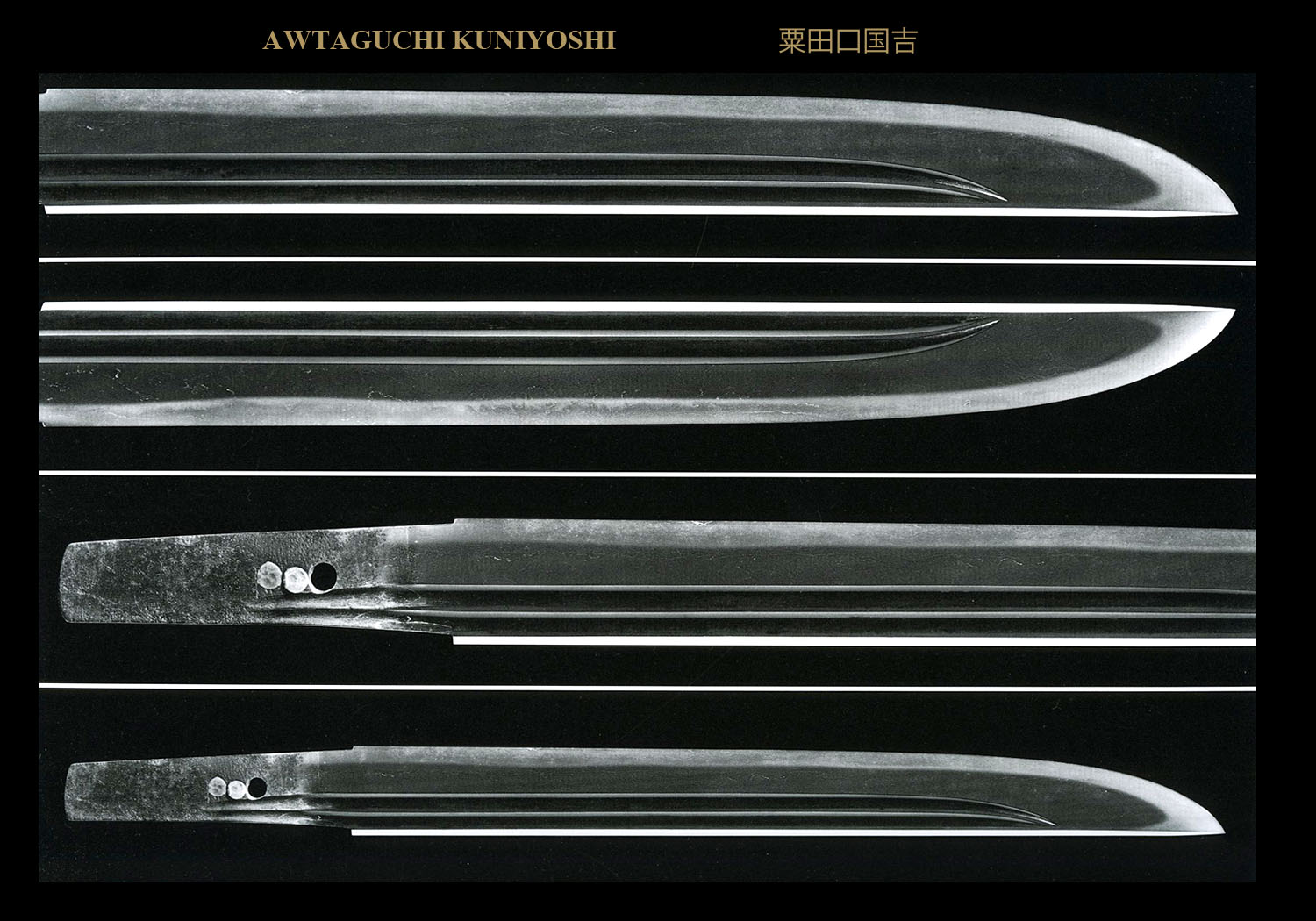 Some of the leading tantô smiths of this period were of the Awtaguchi School 粟田口 (Norikuni 則国, Kuniyoshi 国吉, Yoshimitsu 吉光), Rai Kunitoshi 来国寿俊, and the Shintogo school 新藤五 (Kunimitsu 国光 and Kunihiro 国弘).  It should be noted that some of these smiths, particularly Awataguchi Kuniyoshi 粟田口国吉, were known to have made tantô in many various sizes and shapes.  Examples of his various shapes are attached as appendix A.