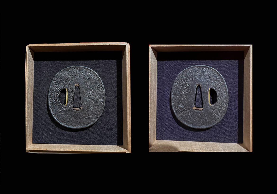 The works of Nobuie are famous because his works forged an absolutely new path in the artistry of tsuba making. His tsuba are strong, masculine, and even considered to be somewhat clumsy. They are thick and strong, made with well forged heavy dense iron. In short, as it has been stated above, he “perfected imperfection” with his works.