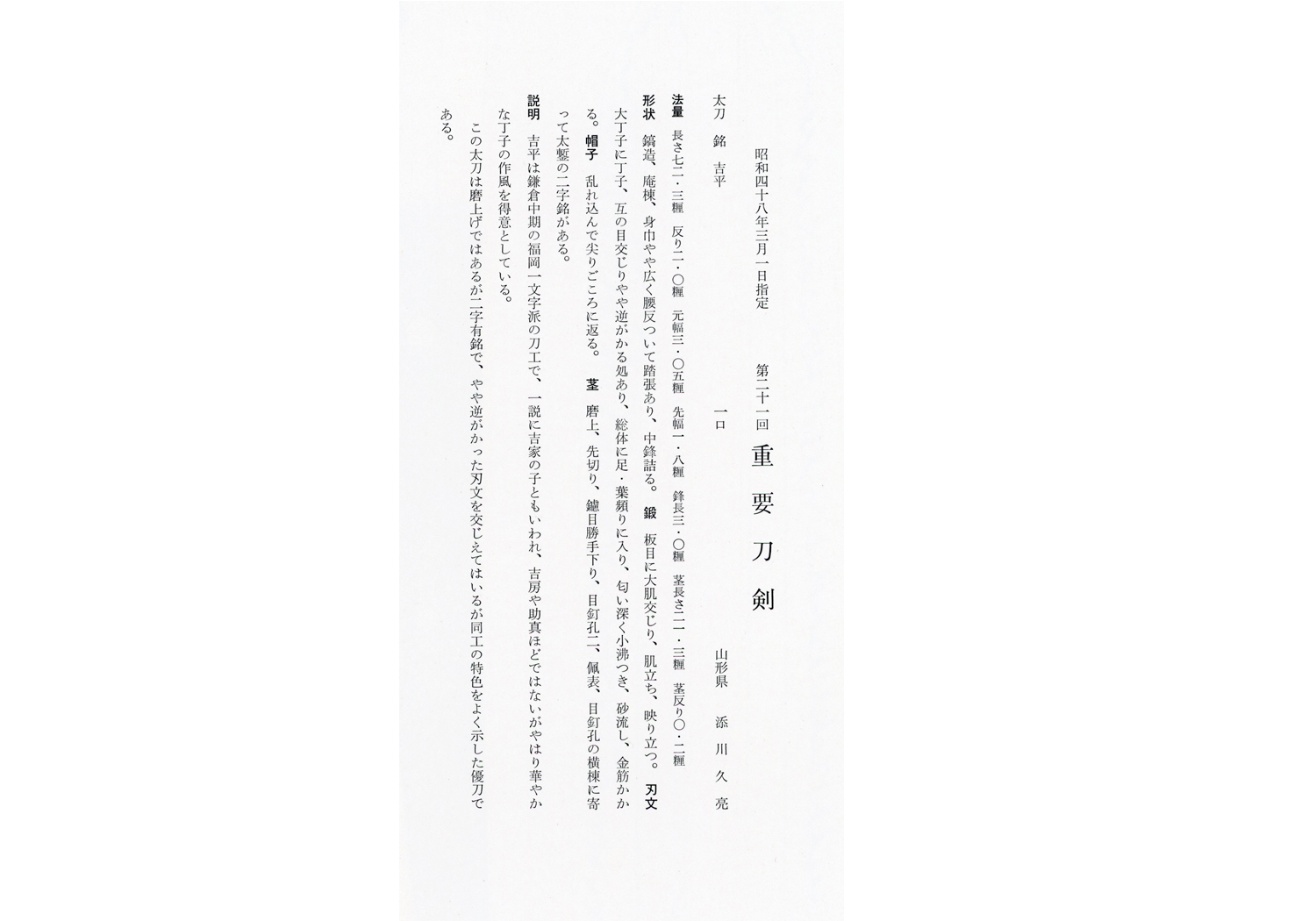 Jūyō-Tōken at the 21st Jūyō shinsa held on March 1, 1973