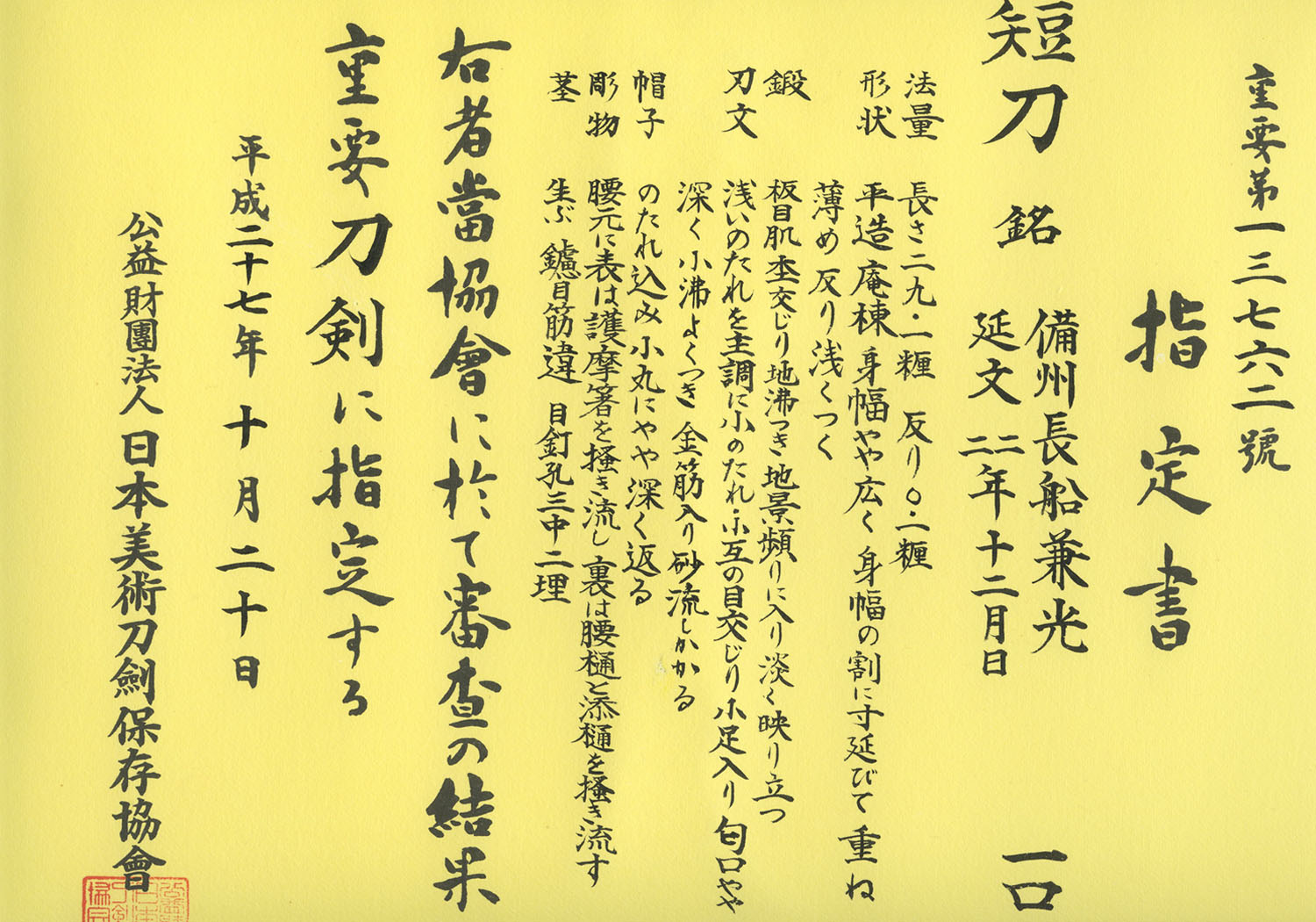 Designated Juyo Token at the 61st shinsa held on the 20th of October 2015.