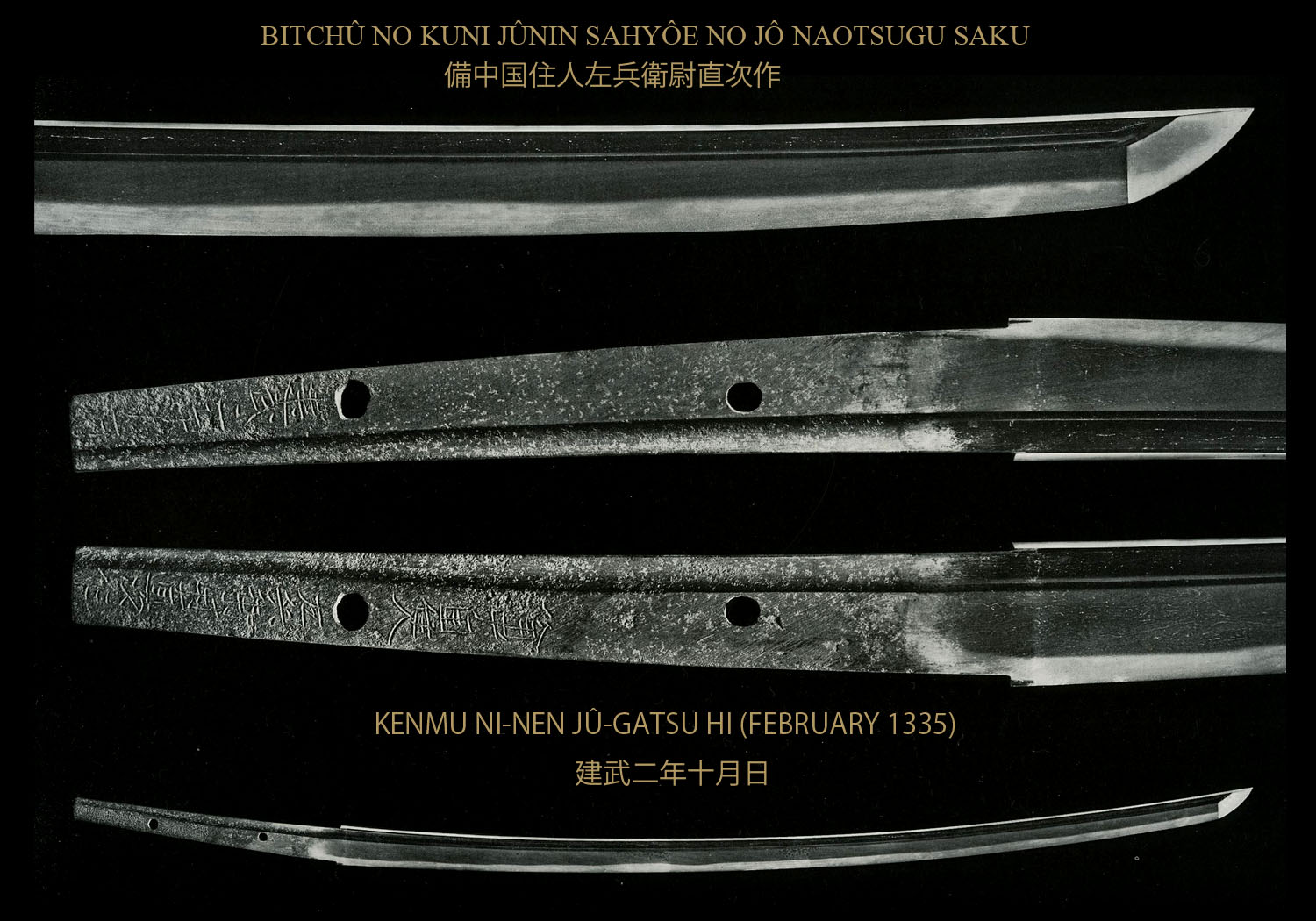 The quality of the Bitchu Aoe (備中青江) smiths of the Kamakura era was highly recognized and this is evidenced by the fact that three of the twelve kaji (smiths) invited by the Emperor Gotoba to come to Kyoto to forge swords were smiths from Bitchu (備中). They were Sadatsugu (貞次), Tsunetsugu (恒次), and Tsuguiye (次家).
